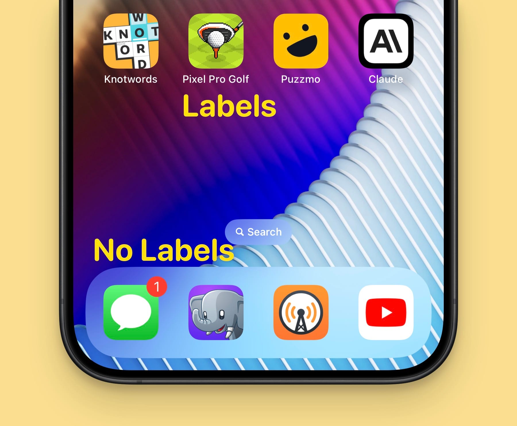 There’s precedence for this in iOS already as the dock already omits label text, as does the main page in the app library. Once again, this should be an opt-in feature for those who want it.