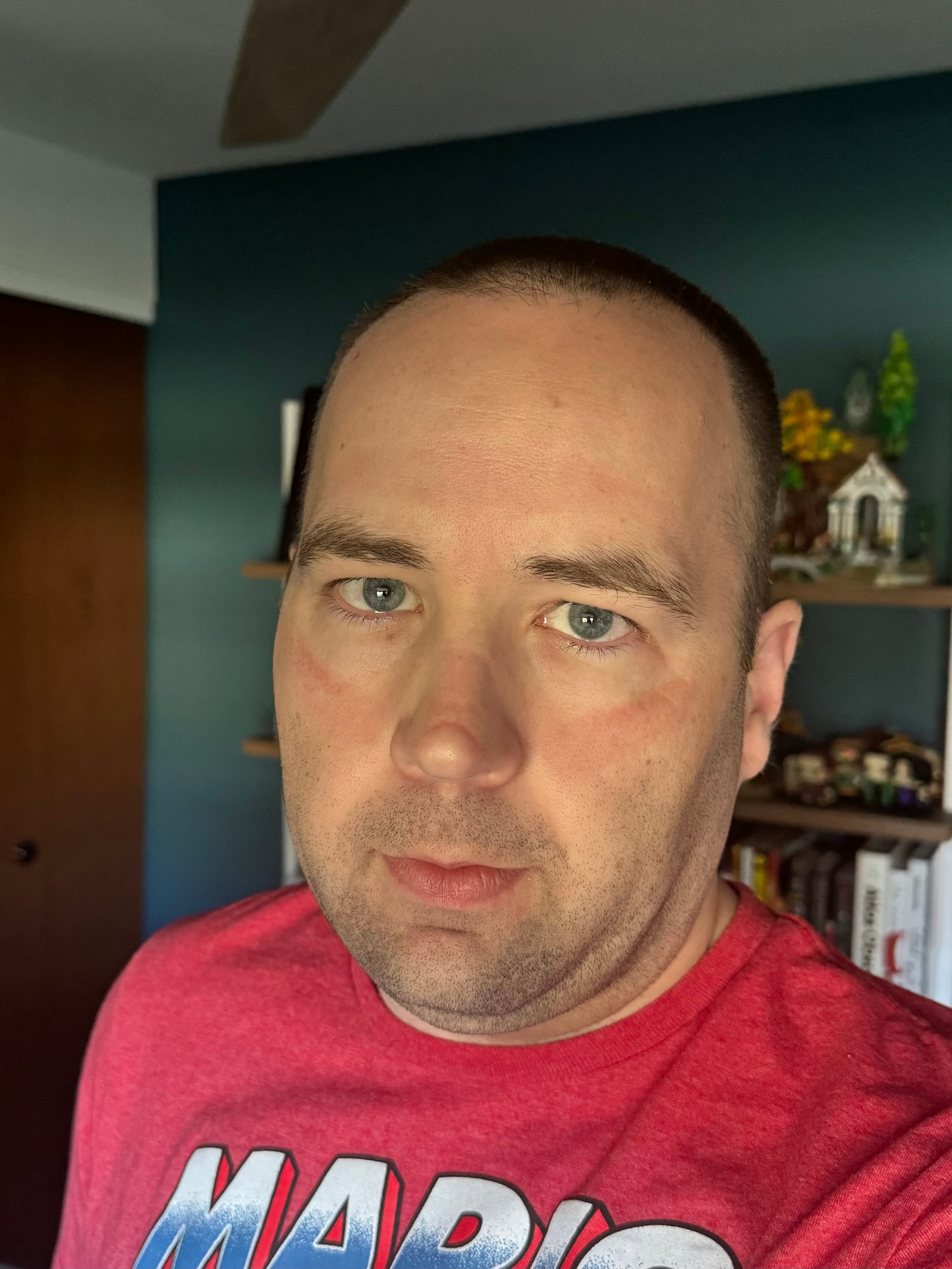 Also, this is what I look like after watching a 90 minute movie alone in the Vision Pro. Can you tell I was wearing a headset? 🫠