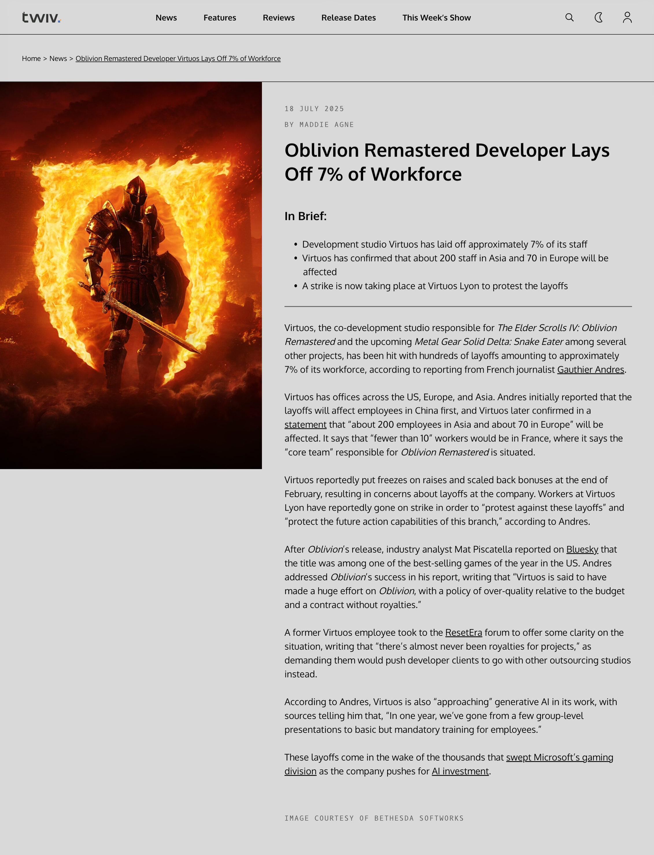 I hope the site is successful, and my initial impressions are that the content lives up to these standards. Like, here's a news story about layoffs at a studio that just released a very successful game (what else is new in the video games industry?):
