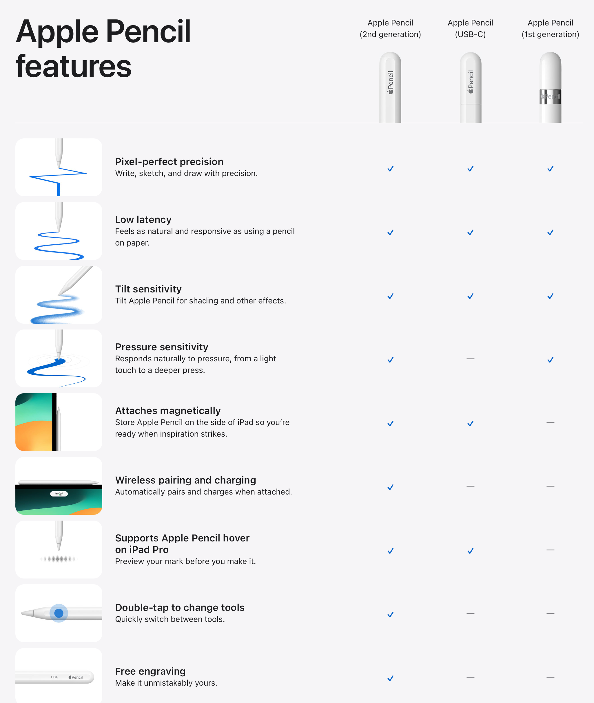 Honestly, the Apple Pencil situation is a perfect encapsulation of the iPad lineup today. Here’s a breakdown of Apple Pencil compatibility and features of each Apple Pencil: