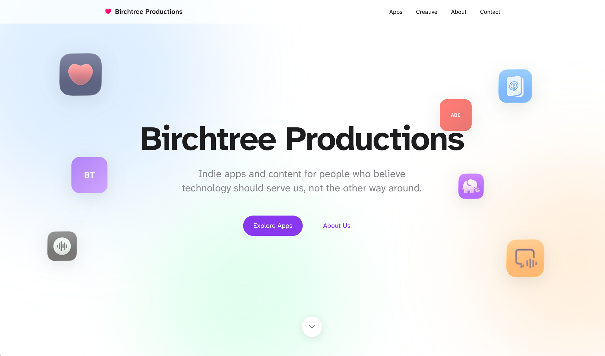 Almost exactly a year ago, I officially launched Birchtree Productions, LLC. This legal entity is what I use for most of the projects I do; all my apps, this blog, and my YouTube channel fall under that umbrella. Amazingly, one thing I never got around to doing for the business when I launched it last year was creating a website. I know, kind of crazy, but I finally went ahead and did that, and today, I'm happy to announce birchtree.productions, a place where people can see all the things I do.