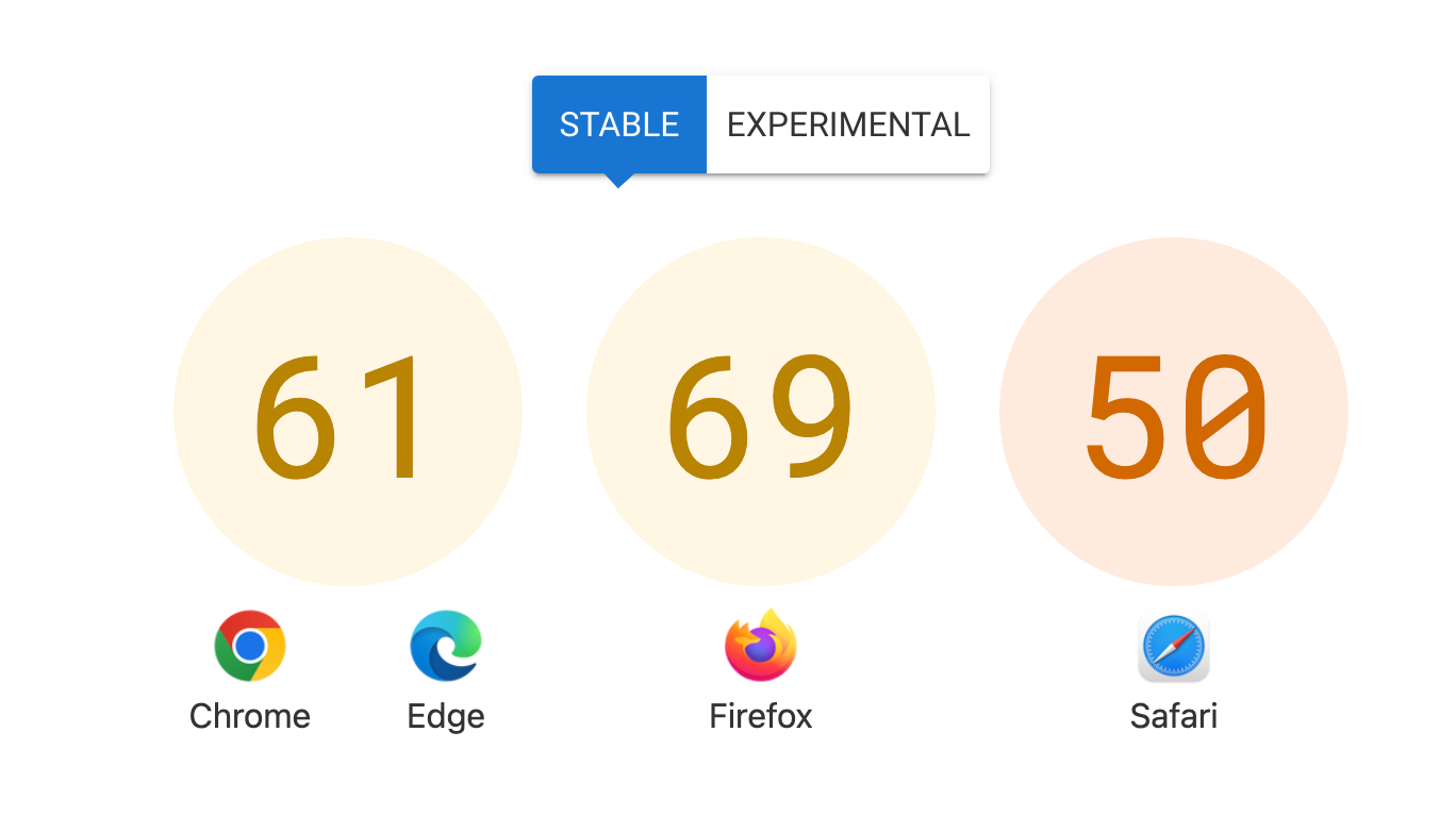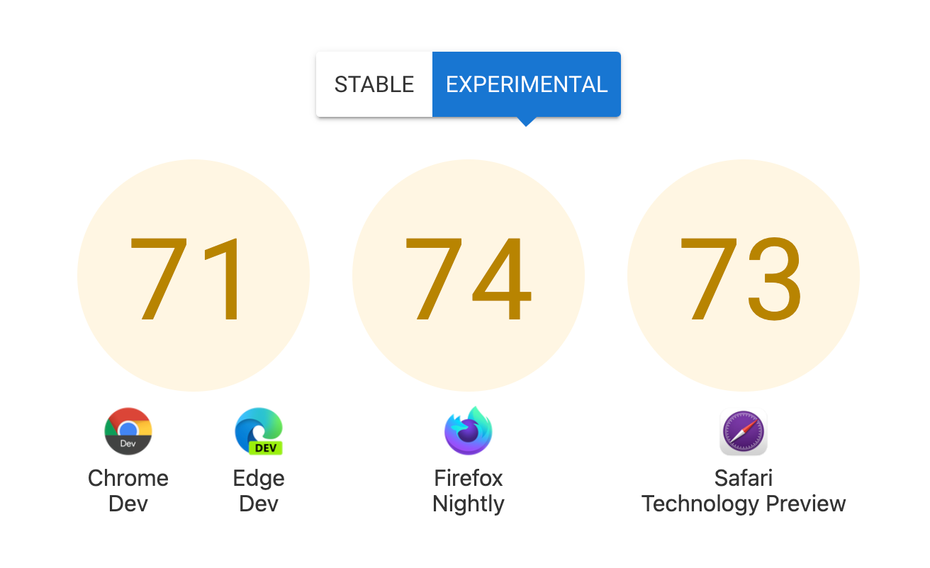 As you may expect, Safari is well behind the other major engines, but the story does get much better when you compare the preview versions of each engine.