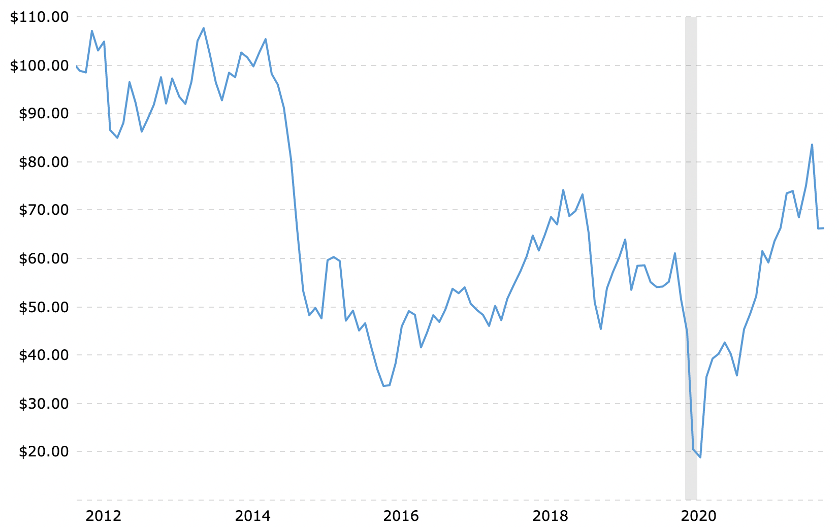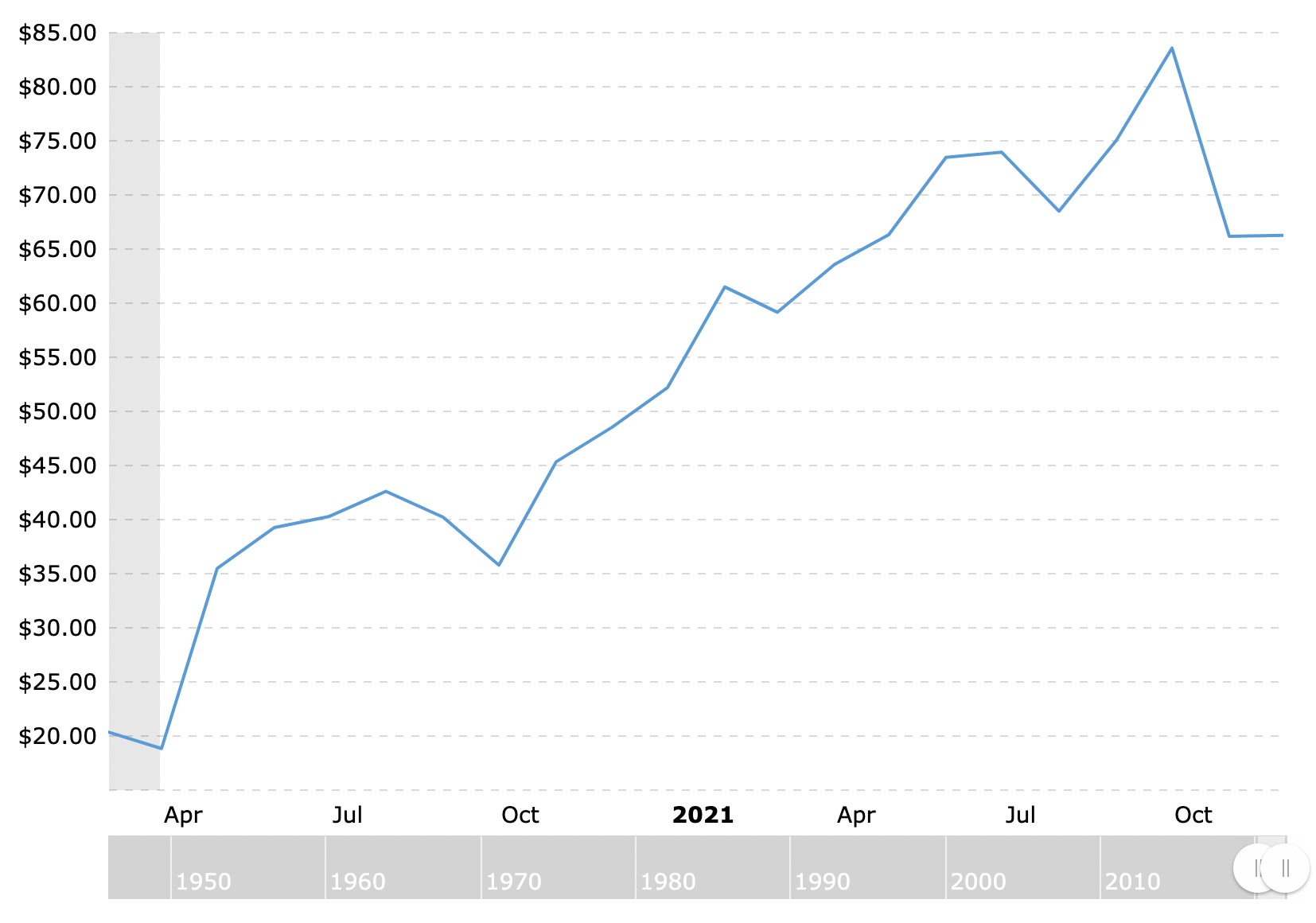 My point here is not to prove that inflation isn't a thing or that I'm an expert on the oil markets, my point is simply to point out that we should all be careful with how we interpret the data put in front of us. In October of this year I could have said, "compared to April 2020, oil prices are up 5x!" However, looking at the data with more or less context changes the story quite a bit.