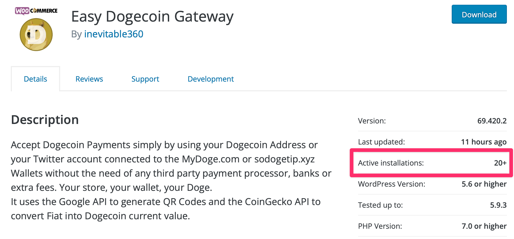 A couple things here. First, this headline (and the plugin author's tweet) are hilariously optimistic. There are 455 million Wordpress sites out there, but none of them can accept Dogecoin until they install the plugin. Also, this is a WooCommerce plugin, so only WordPress users using WooCommerce can use it. The best numbers I can find show about 3-5 million sites with WooCommerce, so 99% of those 455 million are actually not able to use this.