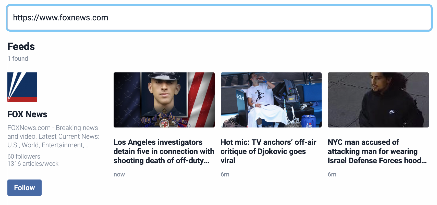 While I don’t think you should follow Fox News, you can do it via RSS.