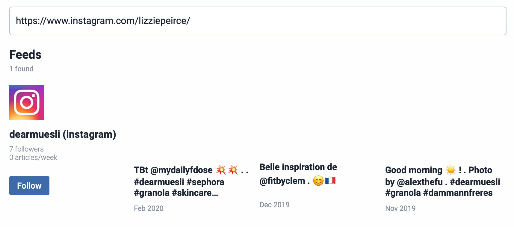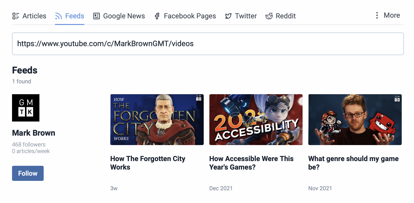 Once again, this just works. Paste in a channel URL and get a feed.