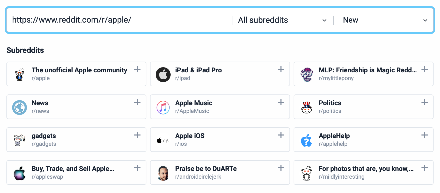 Paste in a subreddit URL and boom, you’ve got a feed of everything posted.