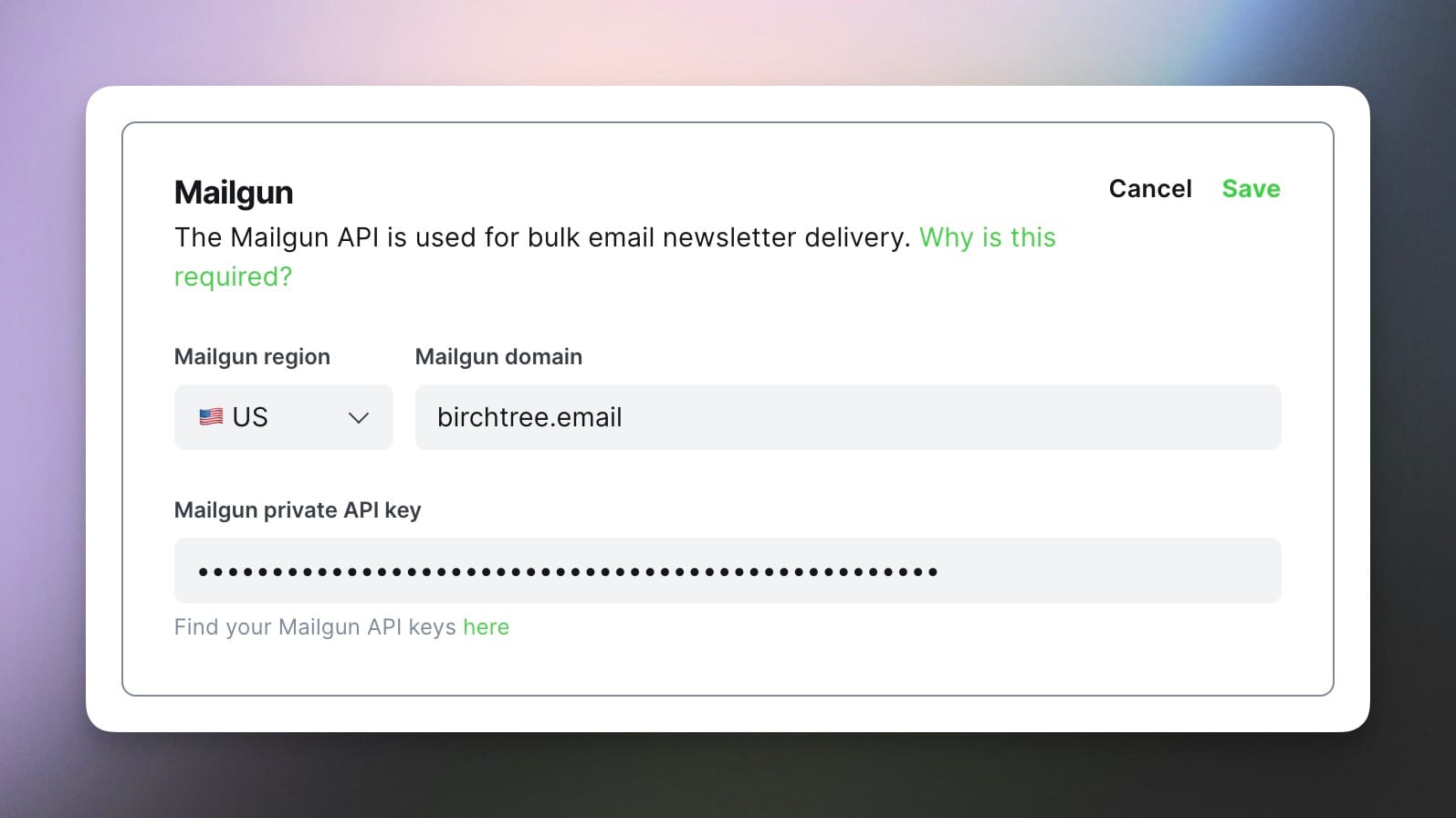 - MailGun is what actually sends the emails that go out when a new post is published as well as when you need to get a magic link to log into your account. This is free for up to 1,000 emails per month, and flexes up beyond that, but I've never hit the limit so far 🤞 (Update: it's been brought to my attention that this plan isn't easy to find like it used to be when I signed up a few years ago. This post explains how you should be able to get to it today)