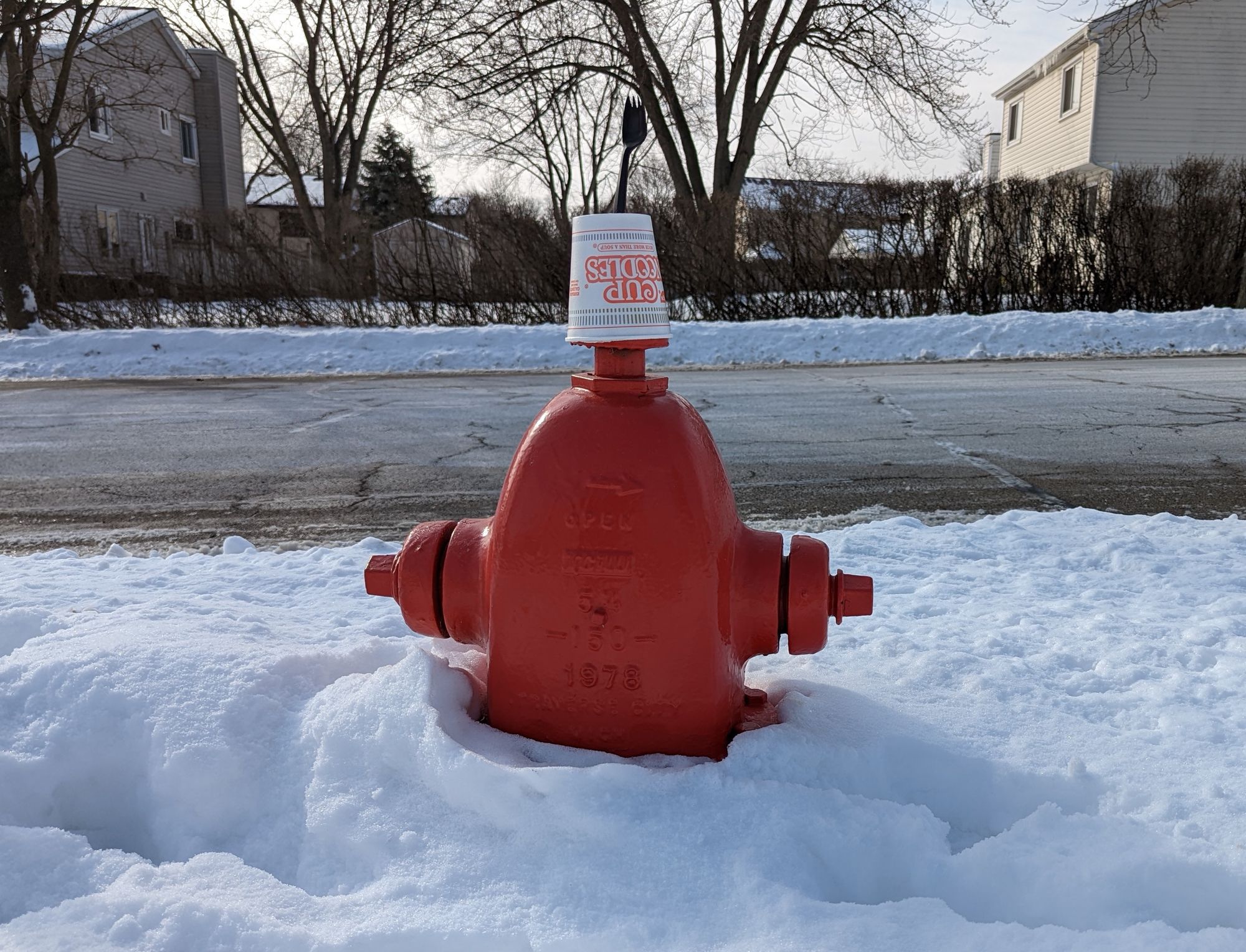For example, I walk my dog on a few routes around the neighborhood, and one path takes us by this fire hydrant with a cup-o-noodles cup and a fork stuck on top of it. It's been there for months and every time I walk by it, my brain starts thinking of a witty tweet I could send with a picture of it. I've never come up with anything really good, but every time I walk by it, my brain kicks into gear and tries again.