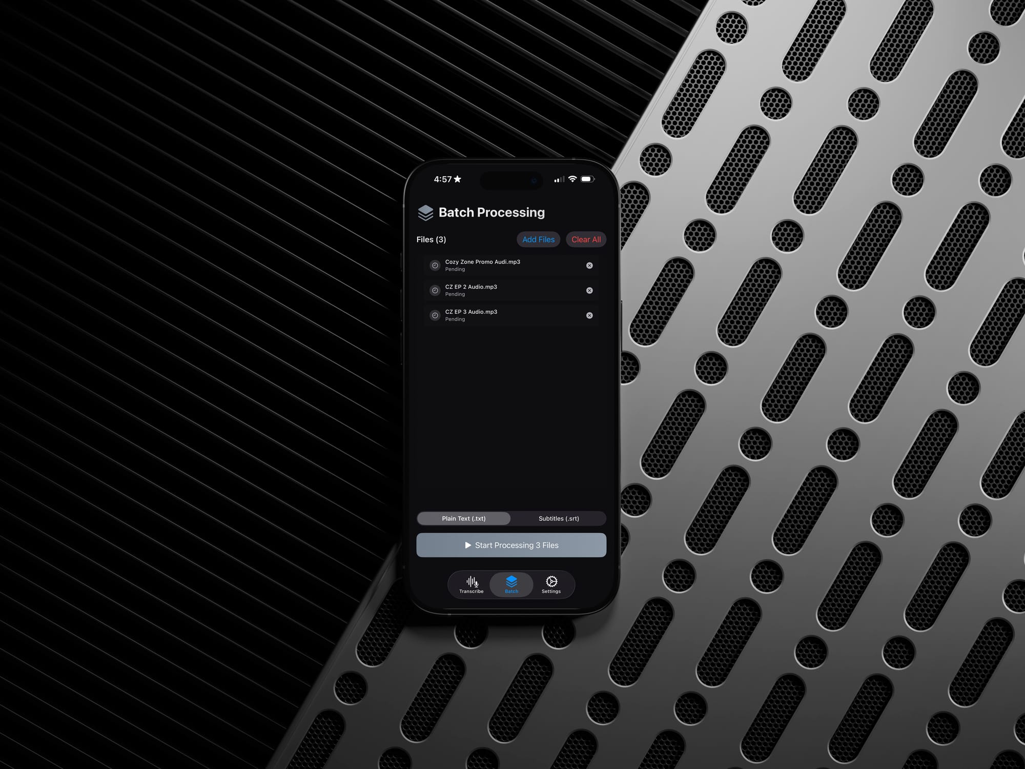 The app is free to download and to create a few transcripts. It costs $19.99 as a one-time unlock to get unlimited transcriptions as well as a batch processing feature.