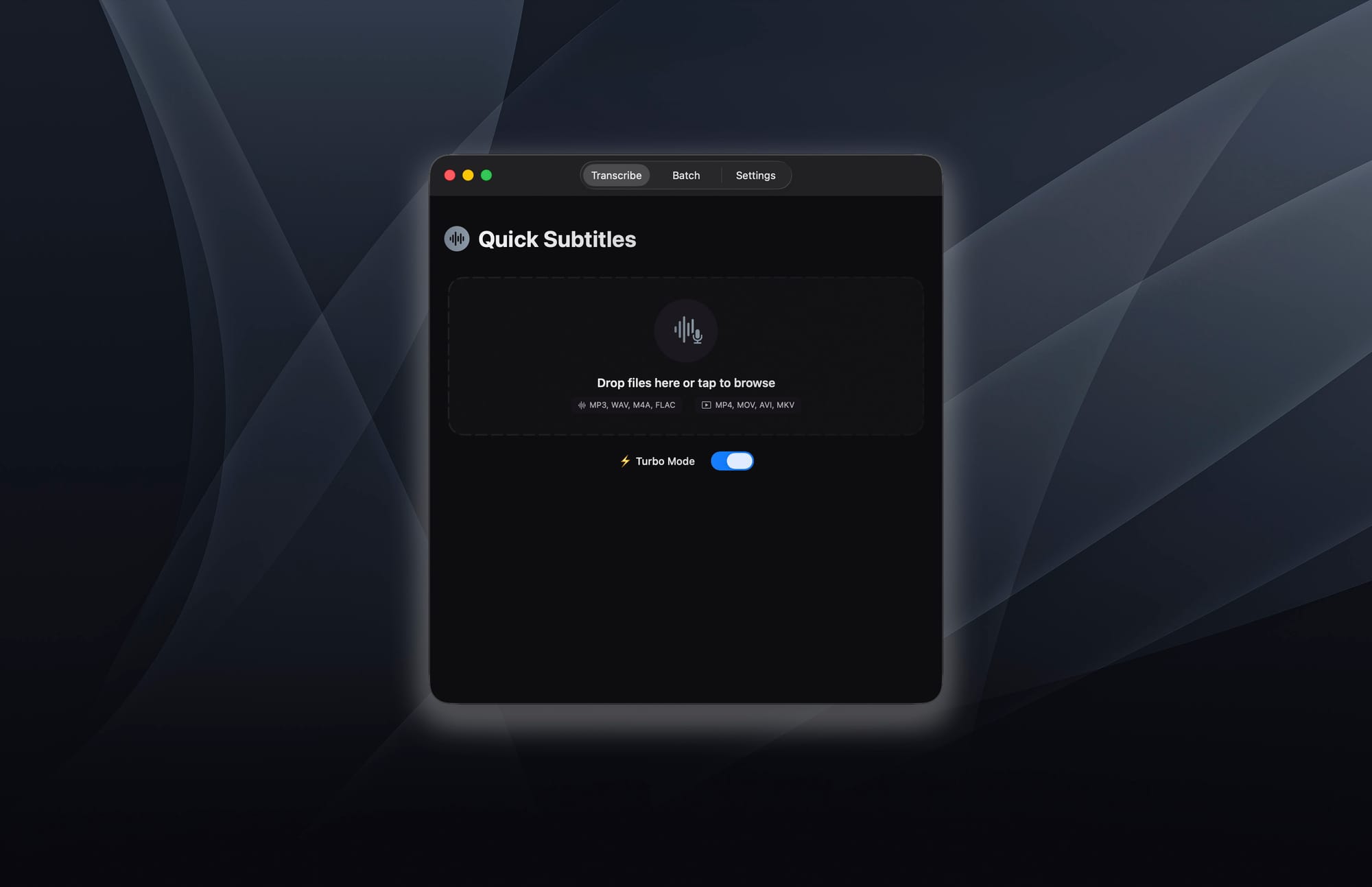 My idea for this app is basically that you're a creator who just created an audio file or a video file, and you need to get a transcript for it to create subtitles, to write show notes, to provide it to somebody as a document. Whatever the case may be, I want to make it so you can just launch Quick Subtitles, drop your file in it, and get what you need within seconds.
