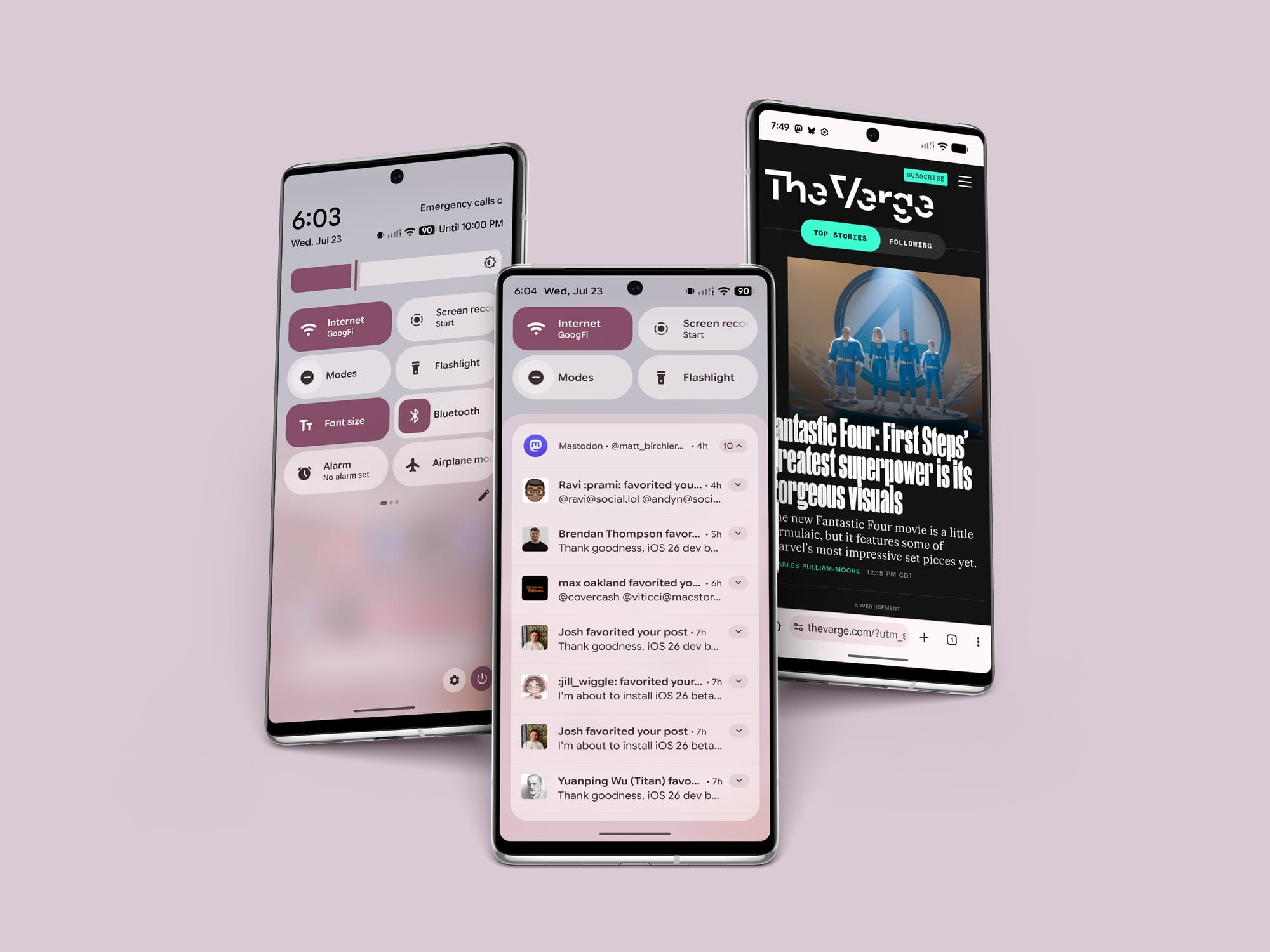 Does it look as fancy as liquid glass? No, but it's infinitely easier to read and its legibility is not dependent on the content behind it. And don't over-index on the pink hue, the UI color defaults to blue on a white background, but Android lets you tint the system UI to suit your taste or match your wallpaper.