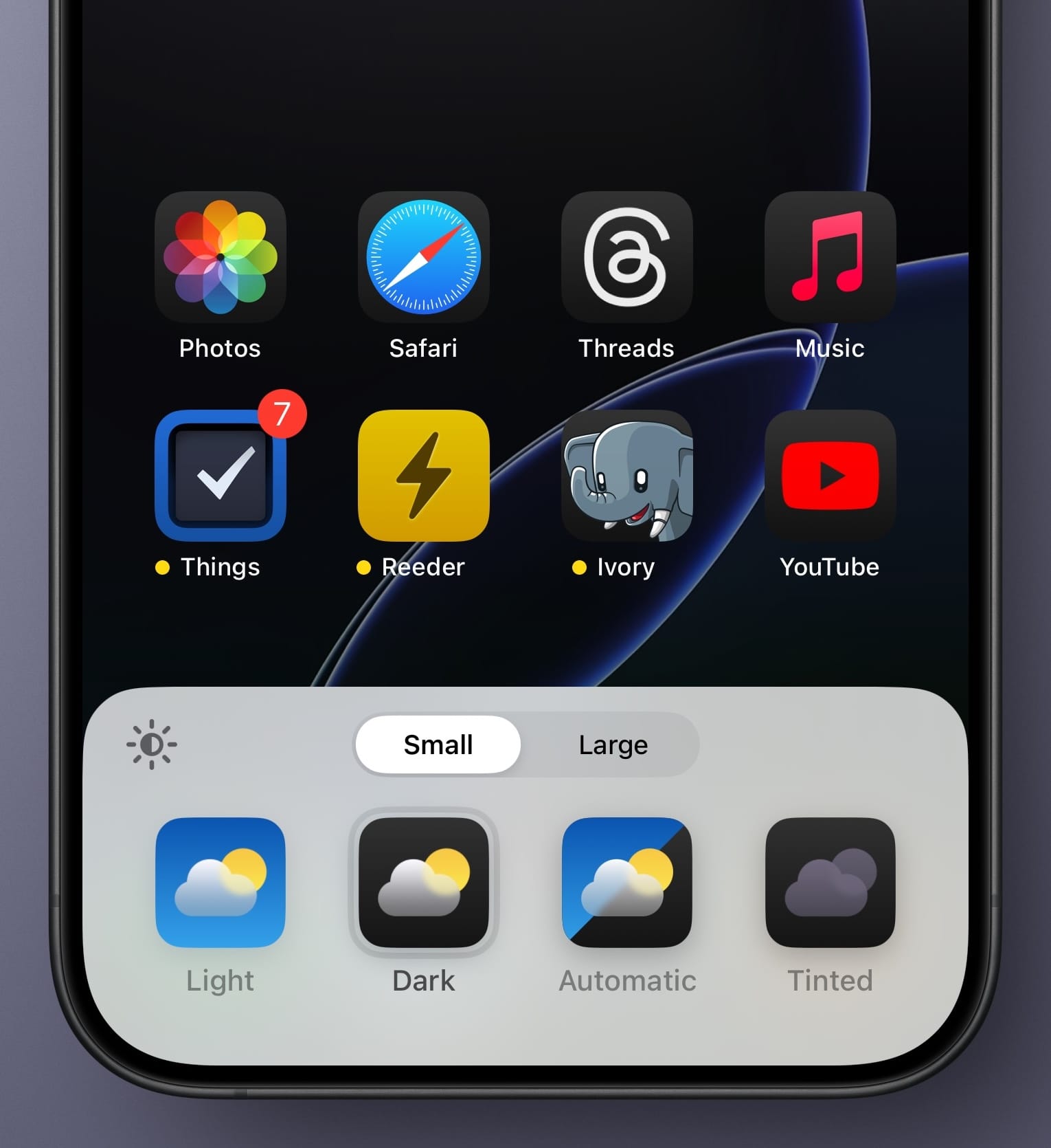 I really dislike the tinted icons, but dark mode icons are pretty nice. You can set these all the time by customizing your home screen, or you can have them just kick in when dark mode on your phone is enabled (or you can never use them if you prefer, it’s all possible in the new home screen customization settings).