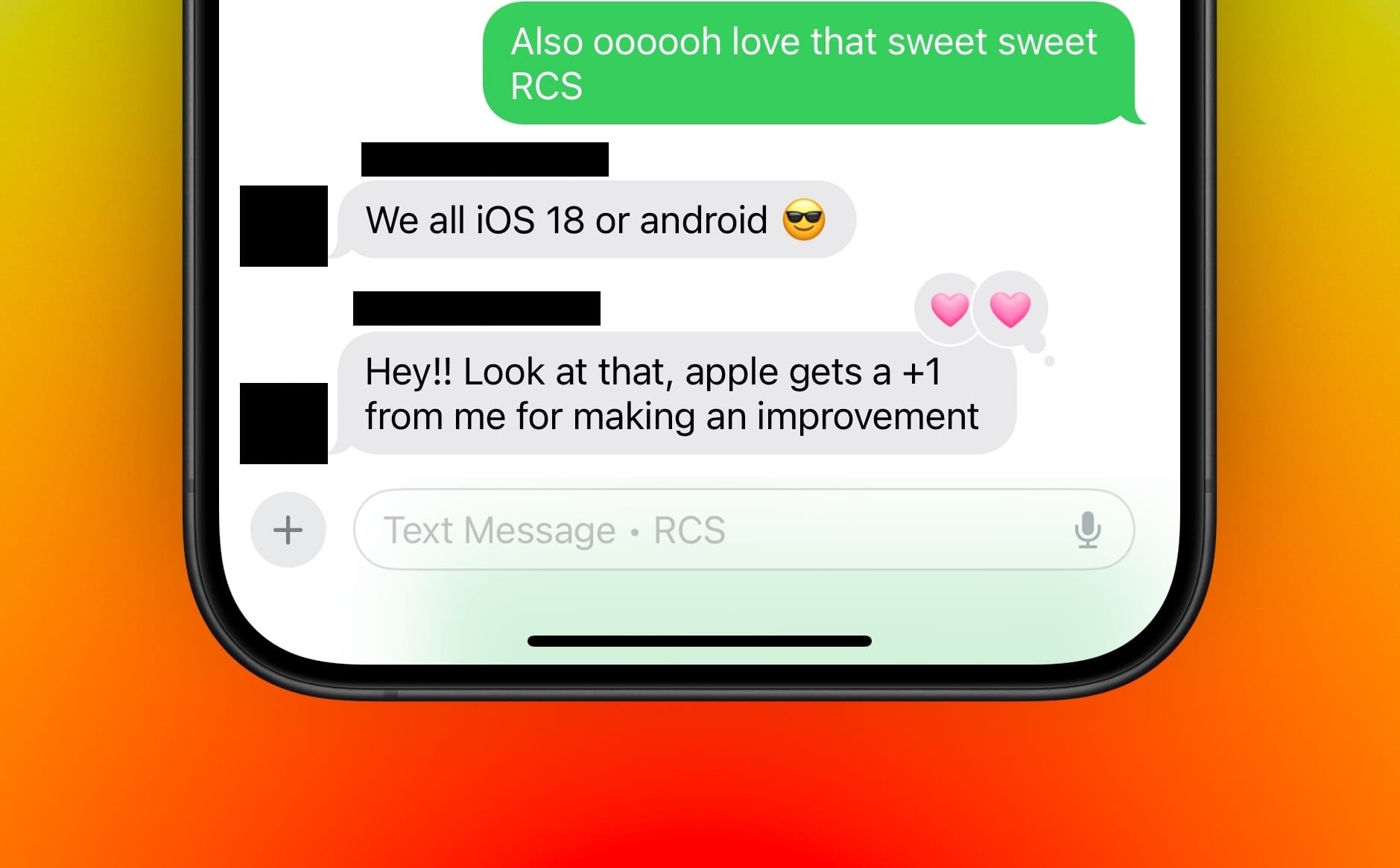 If you have group chats with a mix of iPhone and Android people, then you’ll need every iPhone user in the chat to upgrade to iOS 18 before the convo will switch over, so encourage your iPhone friends and family to upgrade.