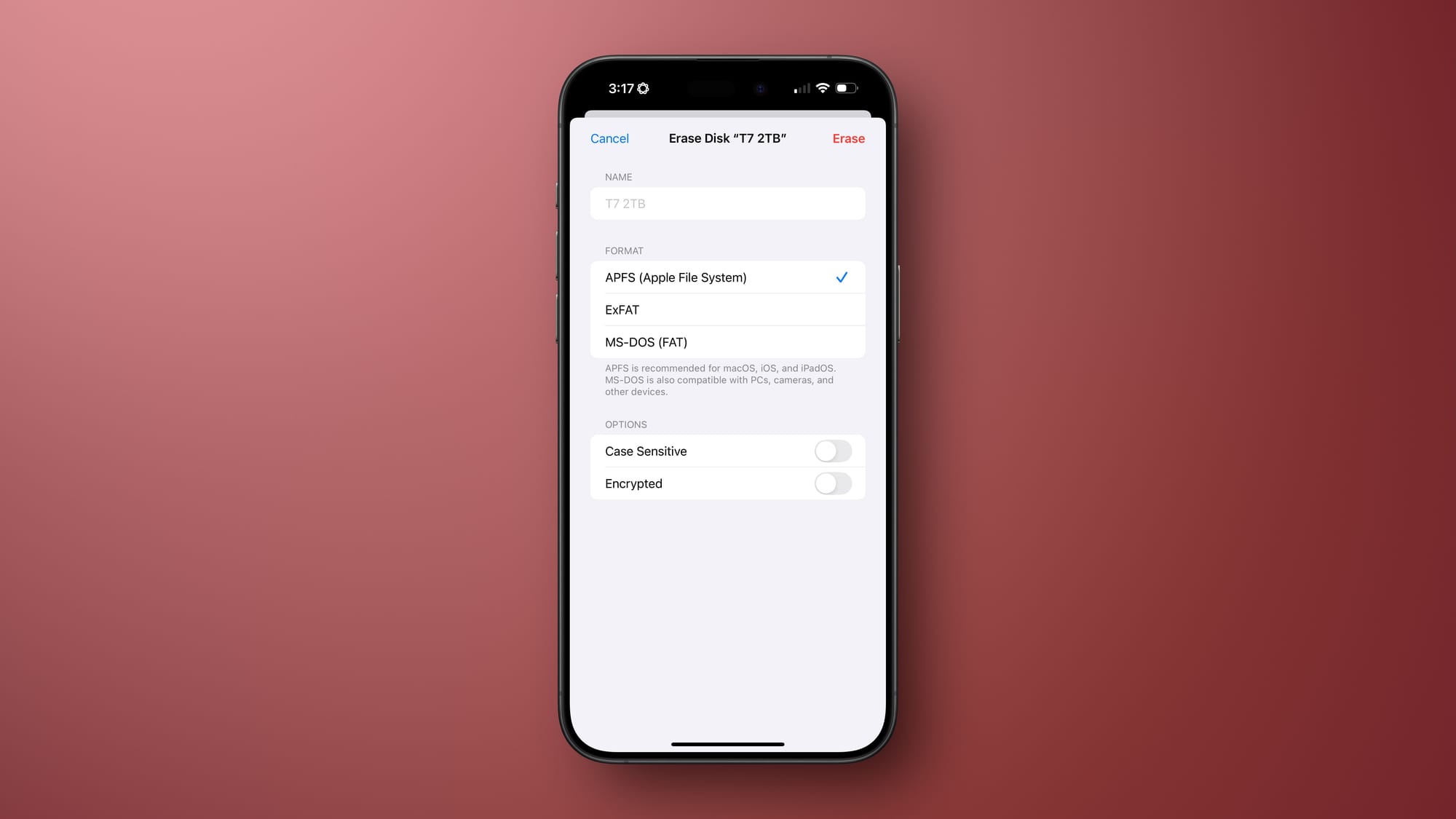 This is obviously not a huge thing for most people, but every once in a while you need to format a hard drive, and iOS 18 brings the ability to erase and format connected drives into APFS, ExFAT, and FAT formats.