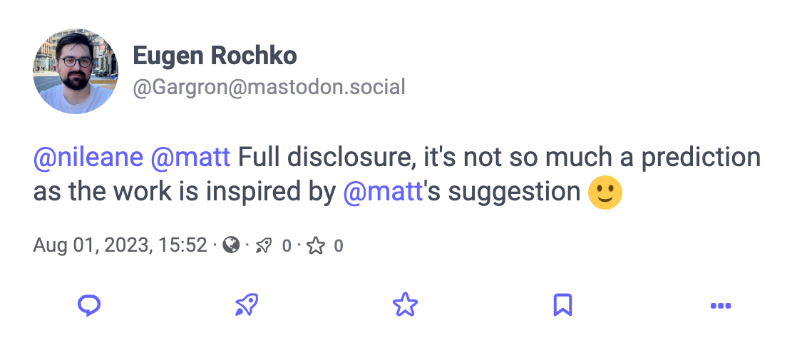Update: Eugen Rochko confirmed that they were inspired by that original post. I'm over the moon ❤️