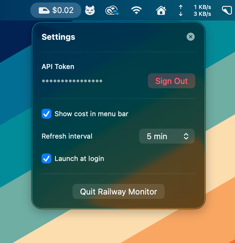This micro app is a really simple one. Basically, I am working on my next app, which will be a web service first and foremost, and that comes with inherent cost. I'm hosting the project on Railway, and I wanted to have a way to monitor my usage on my Mac automatically.