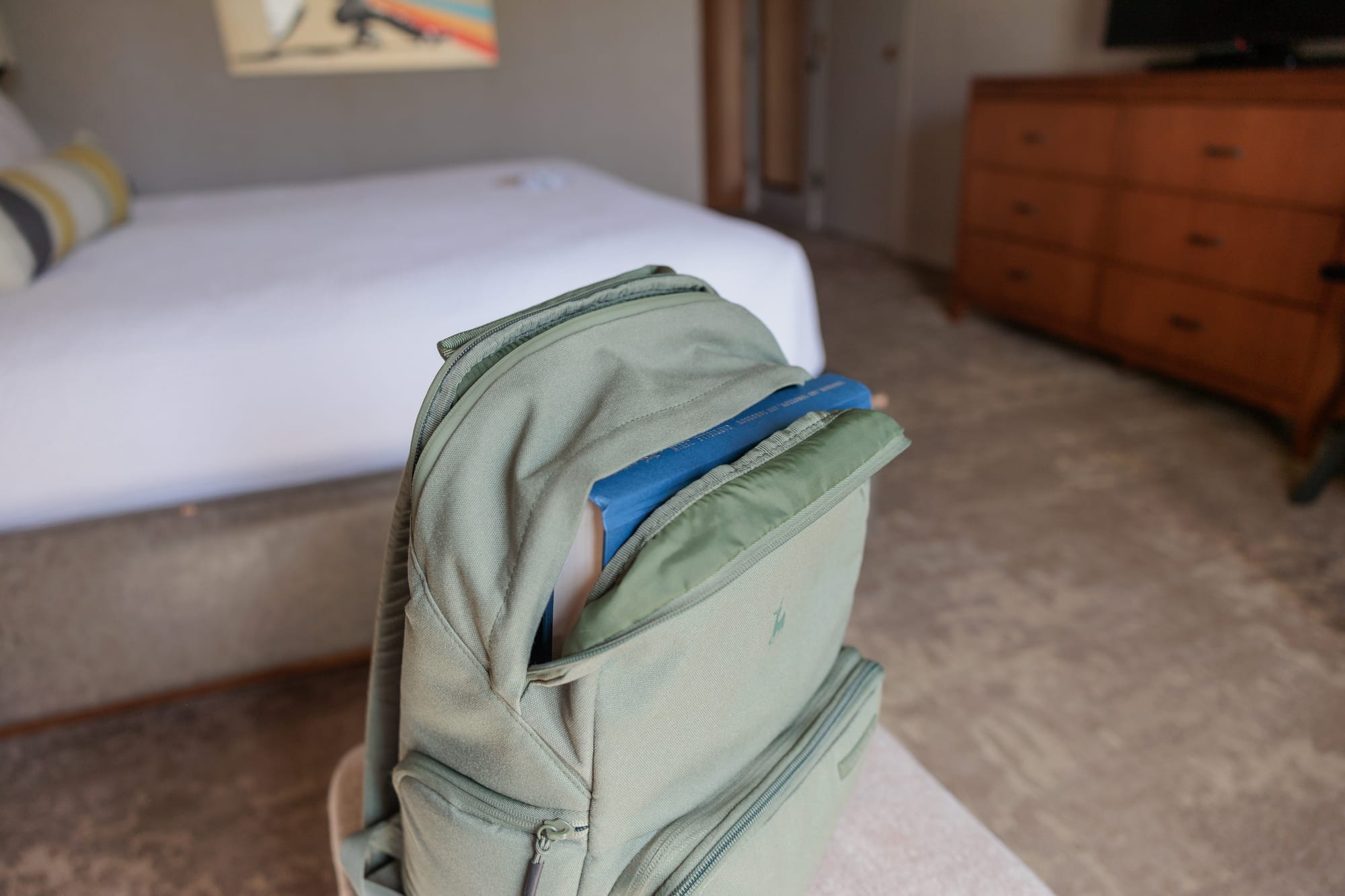 Although even sideways, there’s not much extra space. I brought a hardcover copy of Tomorrow, and Tomorrow, and Tomorrow with me, and just getting it in there as well was borderline too much. So yeah, carrying a Vision Pro and a single normal book was enough to have the backpack bursting at the seams both vertically and horizontally.