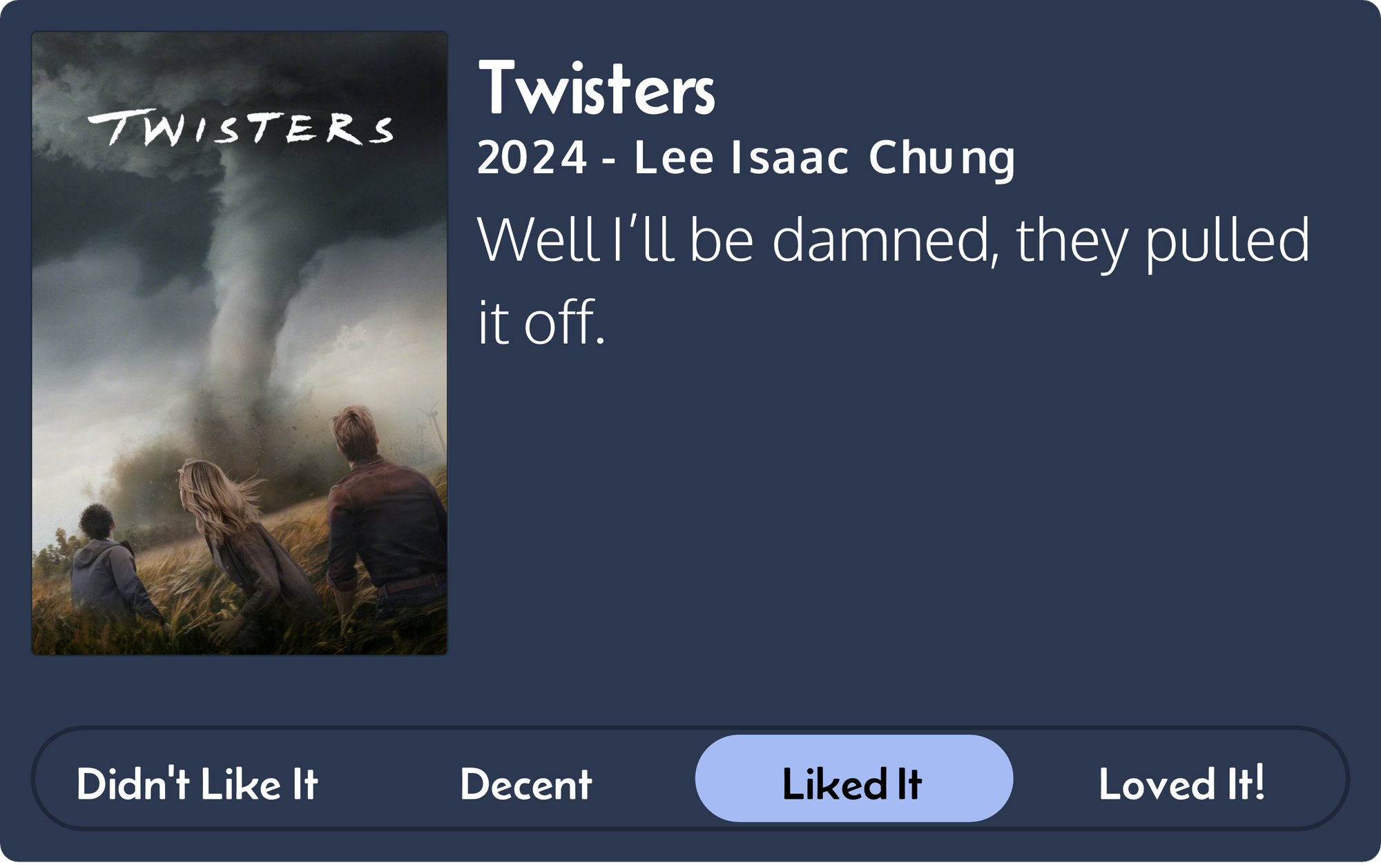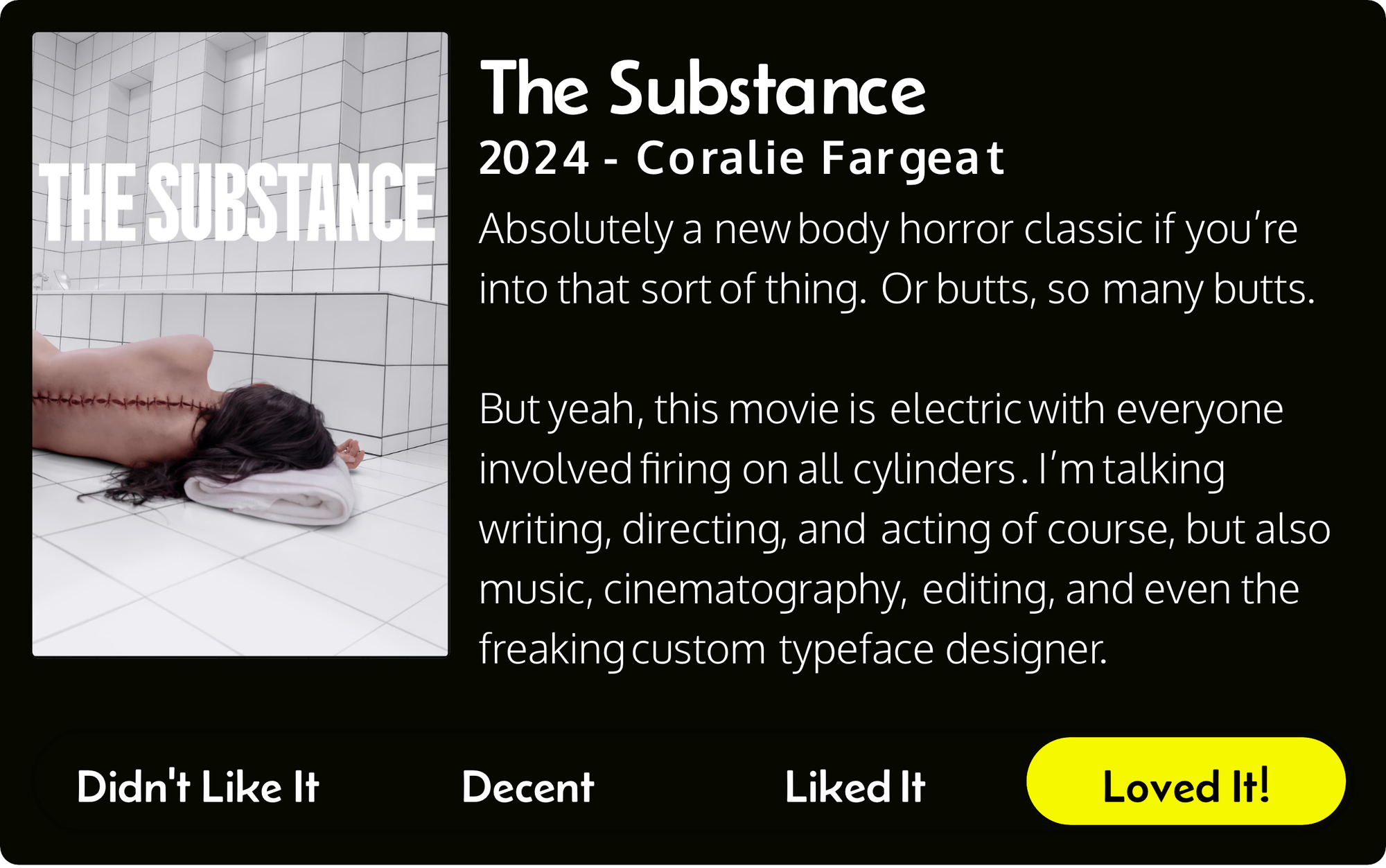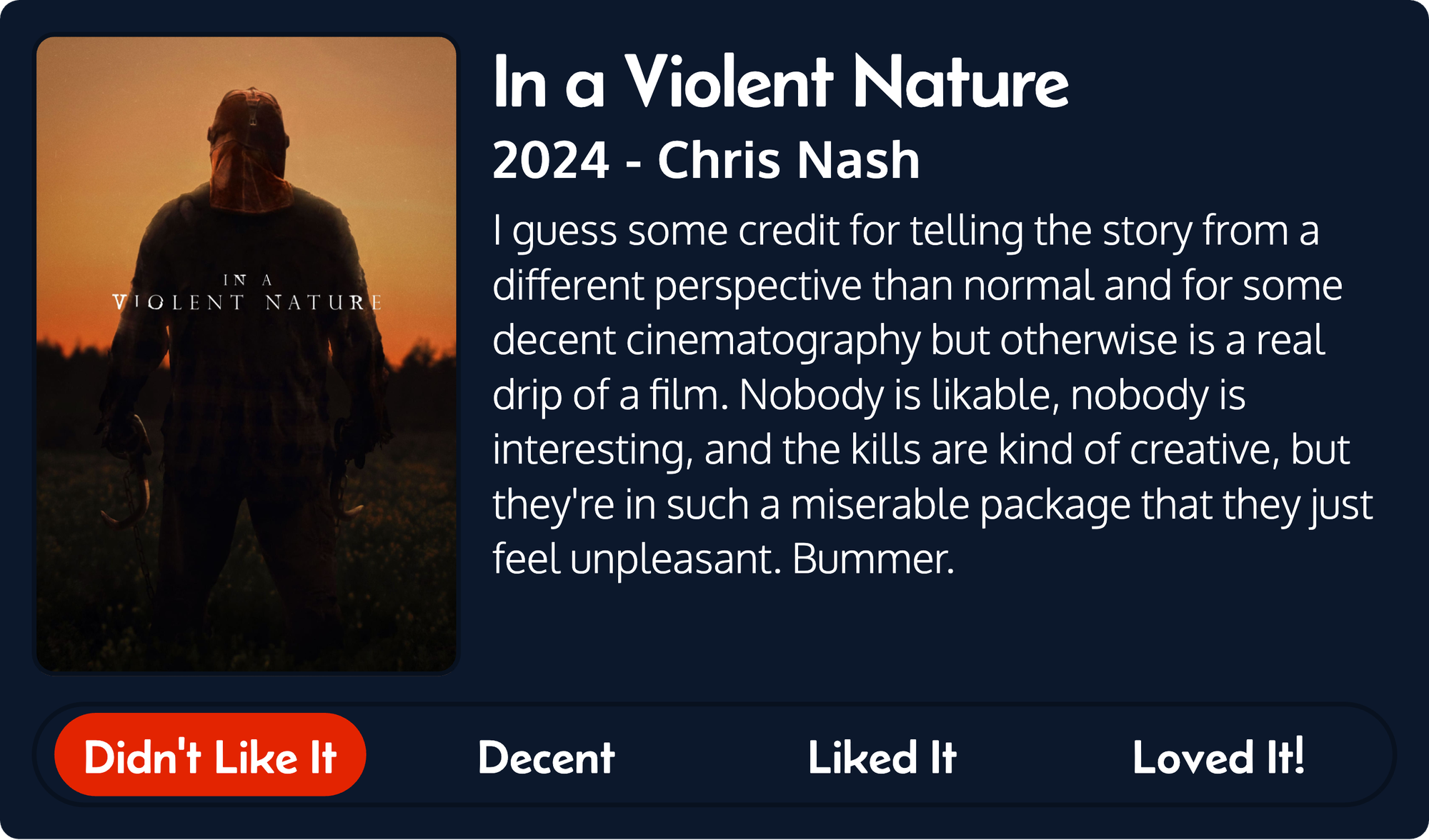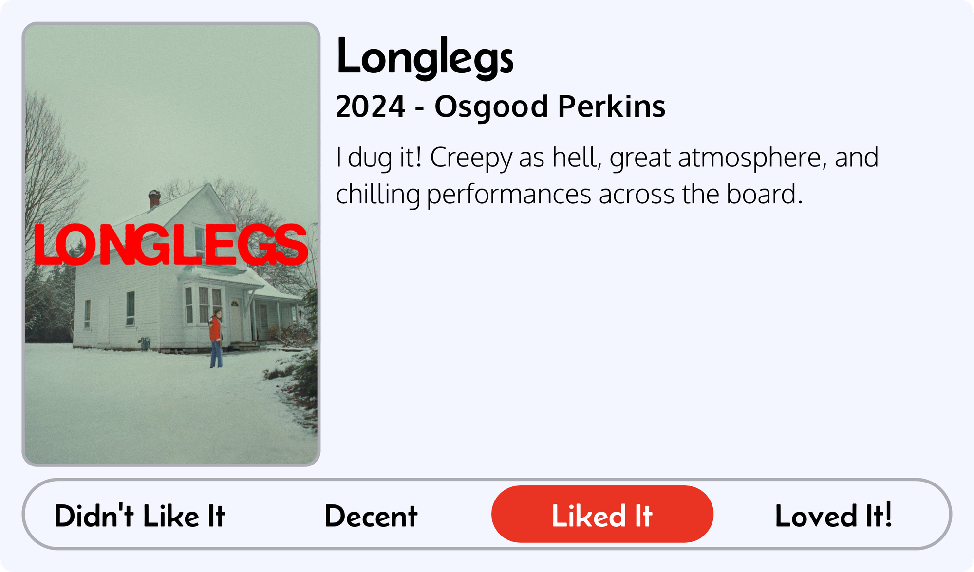 Hell yeah, this is what I’m looking for in a horror movie. Awesome vibes and genuine dread throughout.