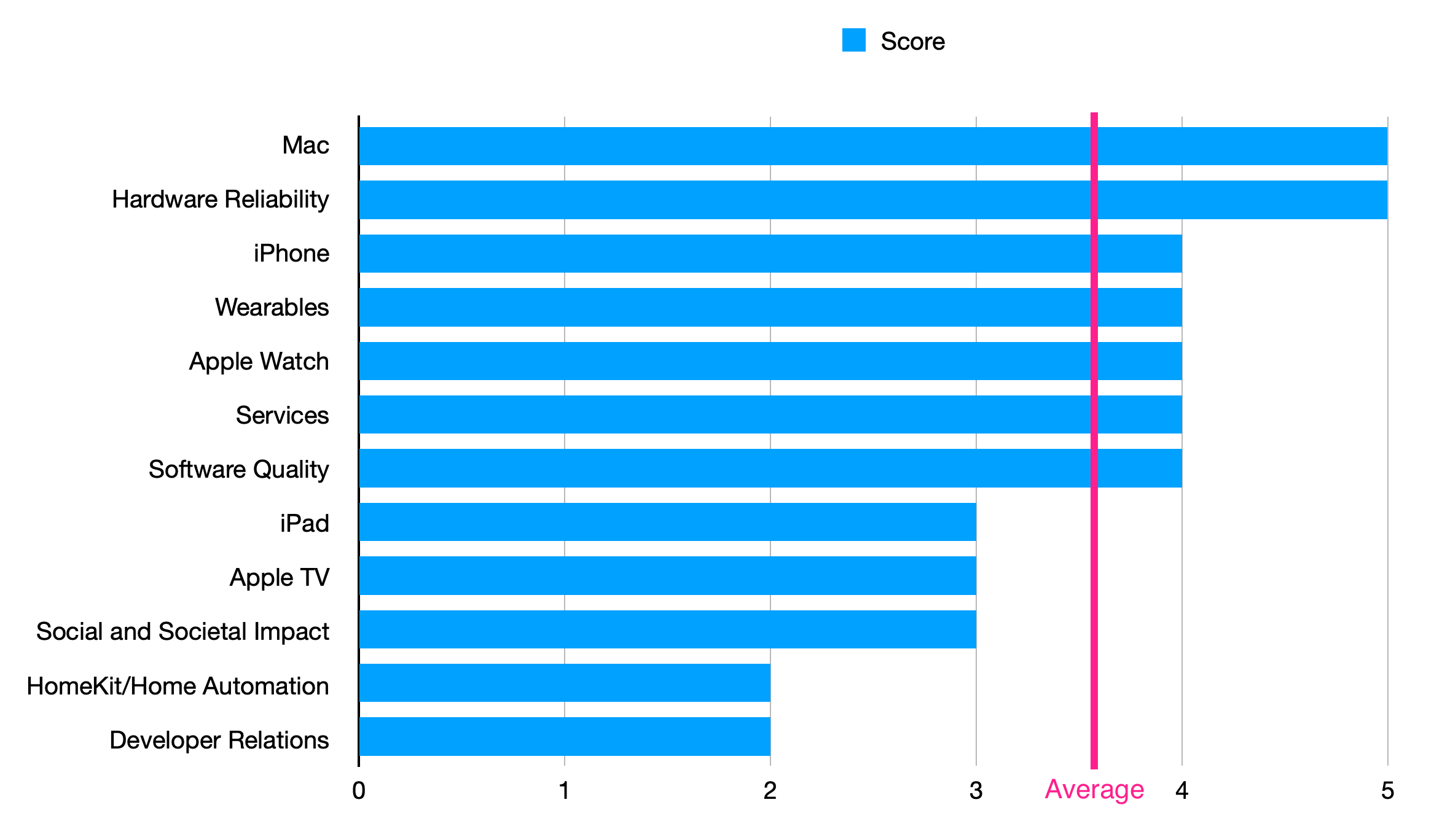 This one's tough to score, but I'm going with an average score. They get points for improving privacy standards for the entire industry, for their continued (although seemingly under-appreciated) contributions to health, and laudable accessibility standards, but their China situation is tenuous and their child protection features that almost rolled out were quite misguided.