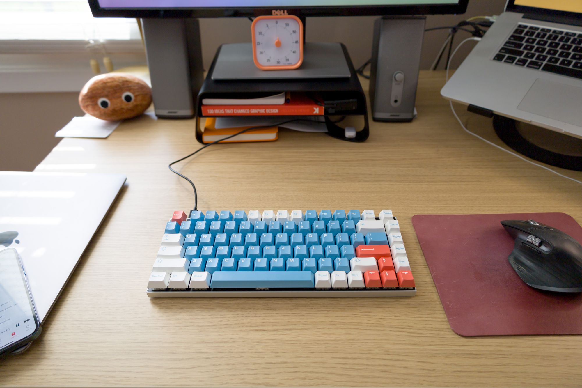 While this keyboard works great, I am hoping to change this one day. It’s wired, which is annoying in general, and it uses micro-USB for its connection, which is more and more inconvenient by the day. If you have any suggestions for a good, similar keyboard that’s either wireless or uses USB-C, I’d love to hear on Twitter!