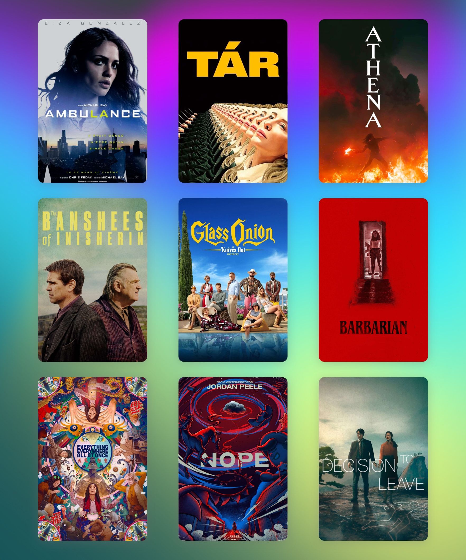 RRR blew me away and is the best blockbuster movie I've seen in ages. It's unabashedly big & loud, and it's an absolute joy. Surely someone in your life has told you that you really need to see this and you may have balked at the 3 hour runtime or that it's not in English (there's an English dub, if you want!), but I can not recommend this enough. Without question the best movie I saw in 2022.