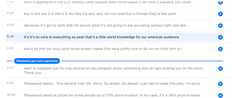 However, the AI will not be perfect and you will want to go into the transcript view to see exactly where it placed these chapter markers so you can fine-tune it down to the second. In my experience, language models tend to put the chapter marker 5 to 10 seconds later than I would. So it's just a matter of dragging the chapter marker from the transcript view up a little bit.