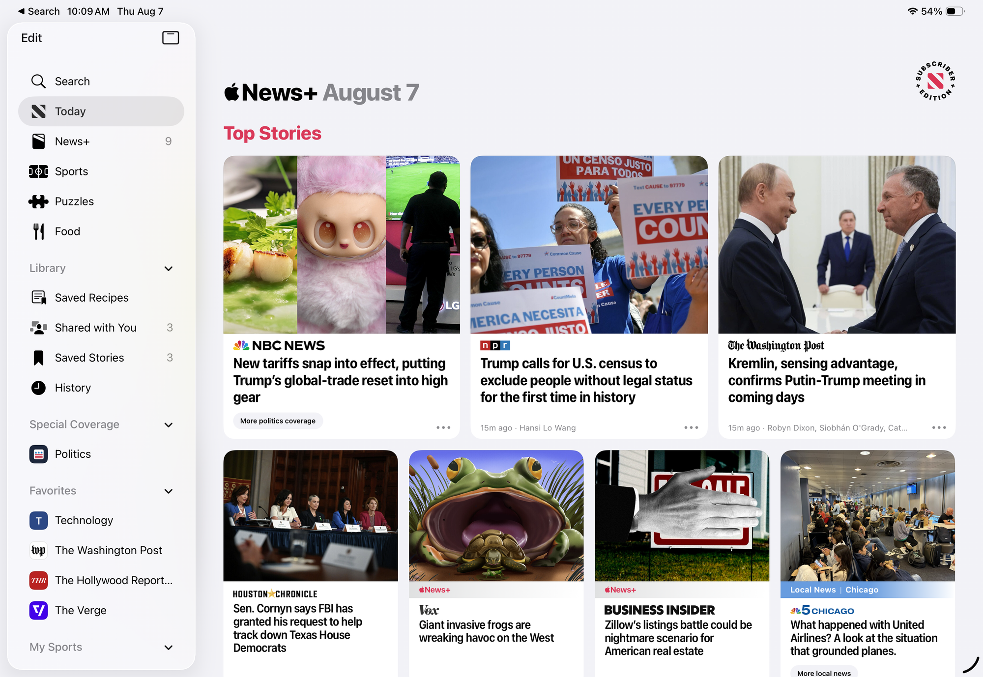 I don't think any of this is fundamentally bad, and I'm sure there are exceptions out there if you look hard enough, but I think it's notable how much these experiences have converged. We're a long way away from 2011's The Daily which was an iPad-only newspaper with a unique iPad experience or the first Twitter app which is still one of the most innovative touch-based apps I think I've ever seen. Today, the social media apps are all unified across platforms, The Daily shut down after just a year, and this is what a news app on the iPad looks like: