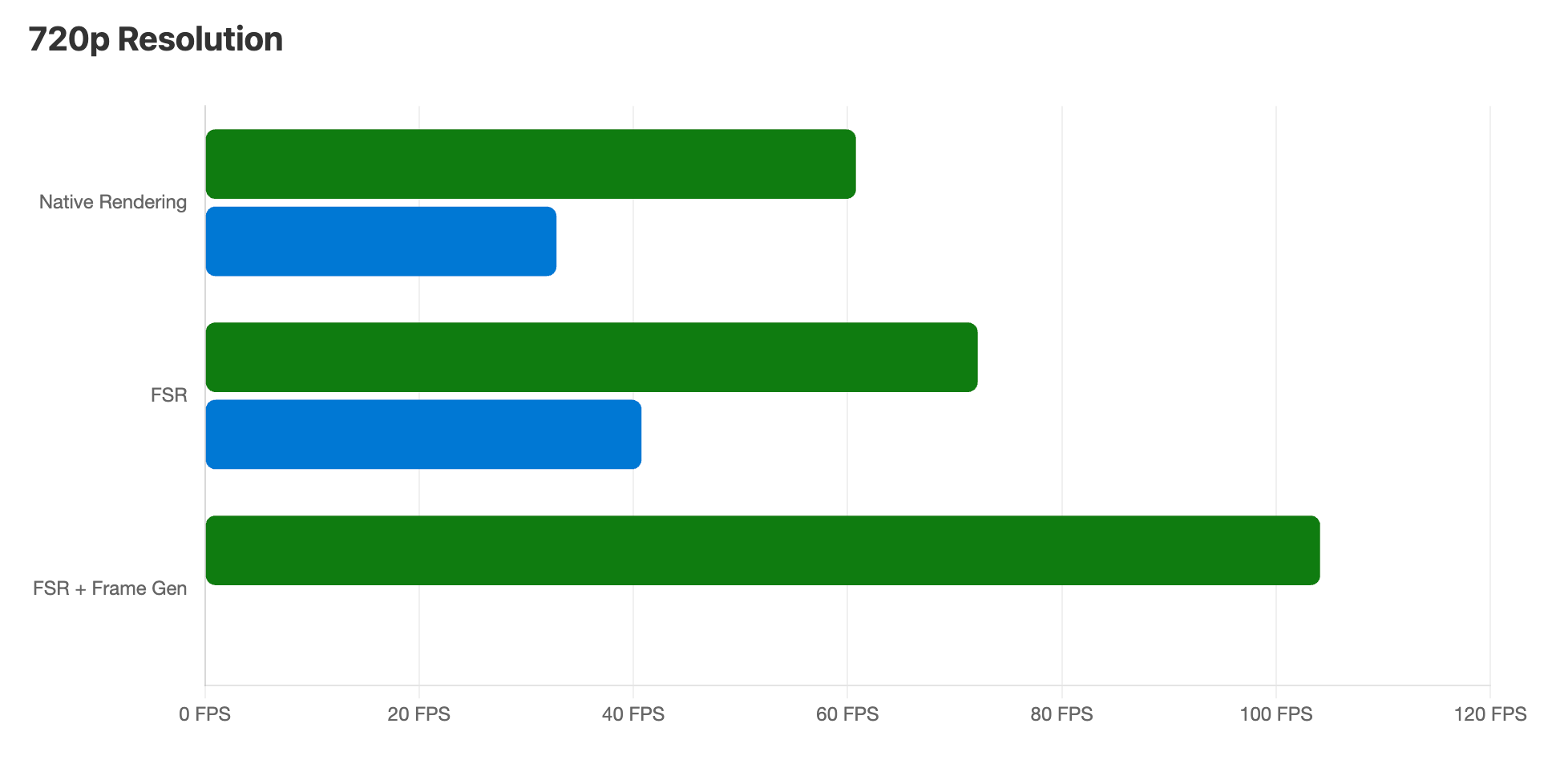 As you can see here, with FSR enabled, you're able to get a nearly locked 60 frames per second in the game, and you're well north of that if you enable frame generation.