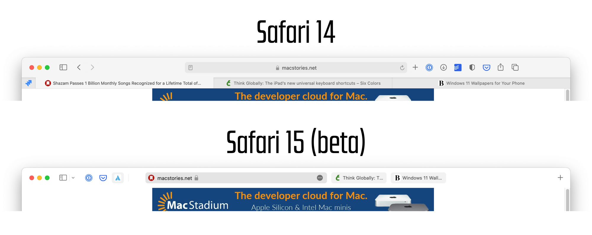 This one is pretty easy to test, so I opened the same tabs in Safari 14 and 15 to see the difference.