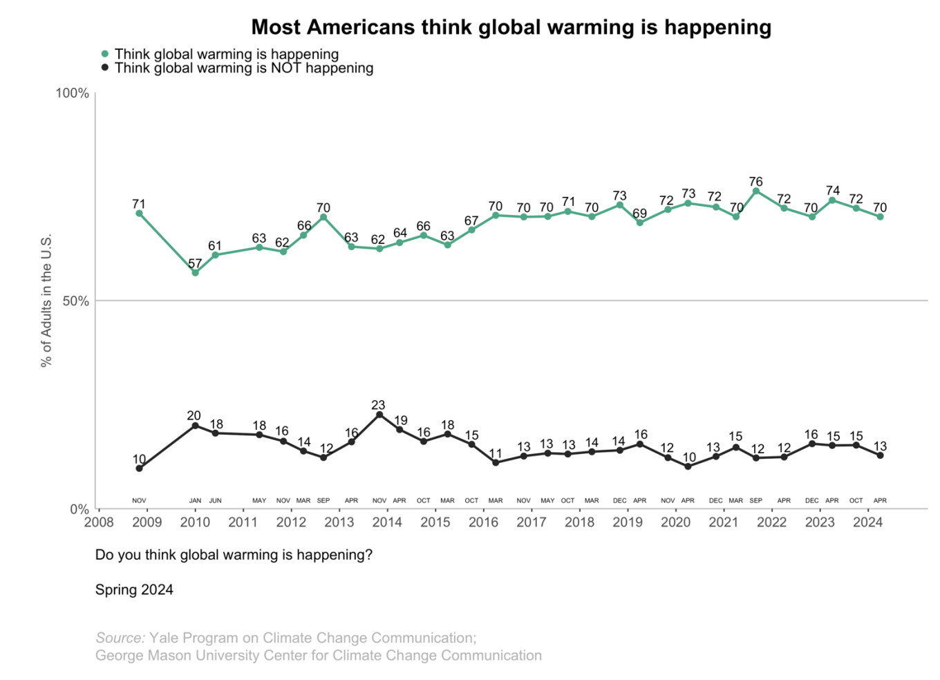And if we expand this to just whether global warming is happening, yes or no: