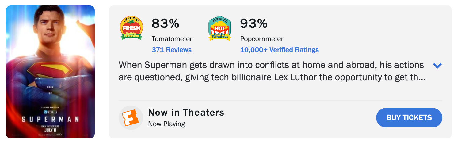 The “ideology” being that Superman is an immigrant trying to make it in a new place, of course. And yes, it’s performing very well, especially in the US market. The best part, audiences aren't hate-watching it, they're loving it.