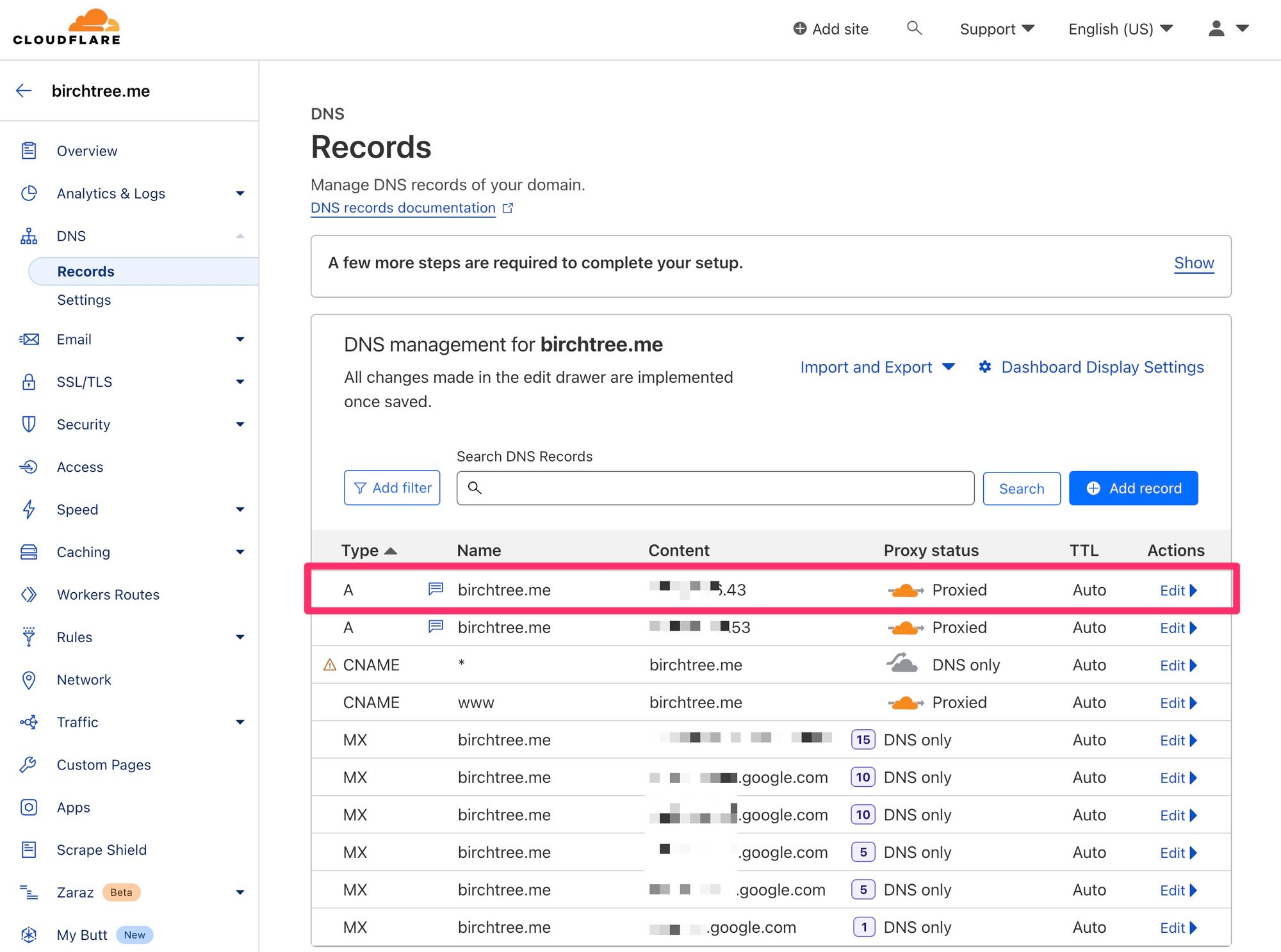 Now all I had to do was log into my CloudFlare account and add a new DNS A record for the new IP address.