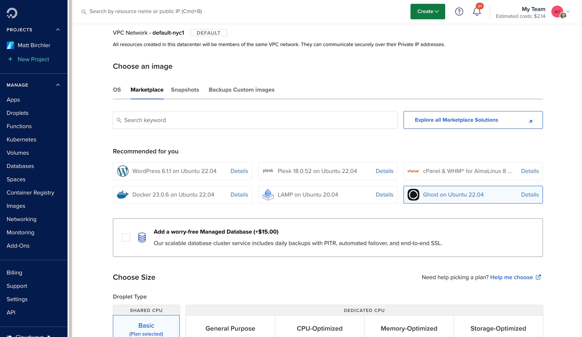 - Spin up a new droplet (server) on DigitalOcean using Ubuntu 22.04 LTS and a fresh Ghost install