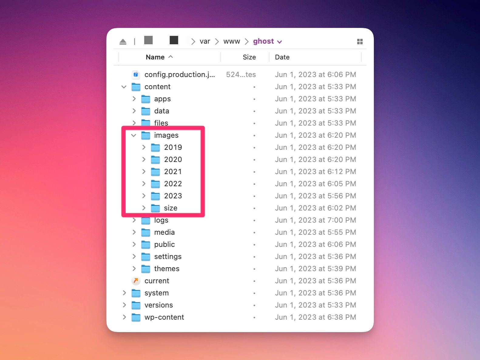 One more thing, make sure that you update permissions on these images and media directories to 777 so that Ghost can properly access those files and users can see them in their browser. This is not something you have to do normally, but I think the permissions got a bit wonky by downloading them to my Mac and then uploading from there.