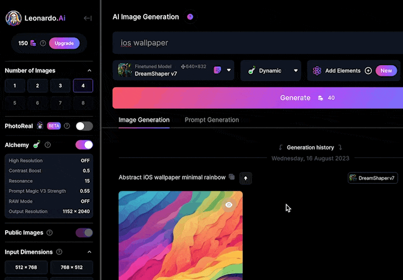 One more note on Relay's rationing of API calls math customers are going to need to do, a bunch of AI-generation tools these days have similar models where you're given "tokens" and different types of requests consume different amounts of tokens. Here's me poking around Leonardo.ai's UI and you can see the number of tokens my request will consumer varies quite a bit based on the parameters I select. This makes some sense when you consider server costs to perform these actions, but it's undeniably a major pain.