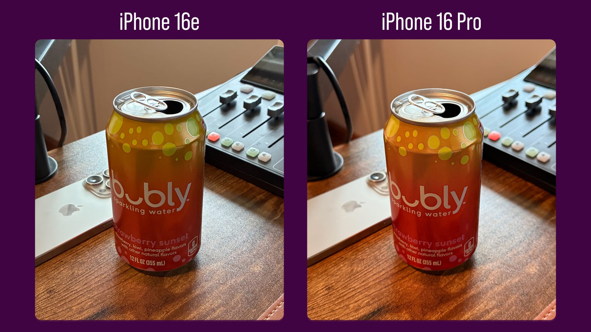 One thing that was pretty clear to me right up front but might not be a huge thing for others is that the 16 Pro has a more shallow depth of field and heavier bokeh on things not in focus. You can see that in the iPhone and audio sliders in the image above, and we can see them even more if we zoom in to another part of the image way in the background.