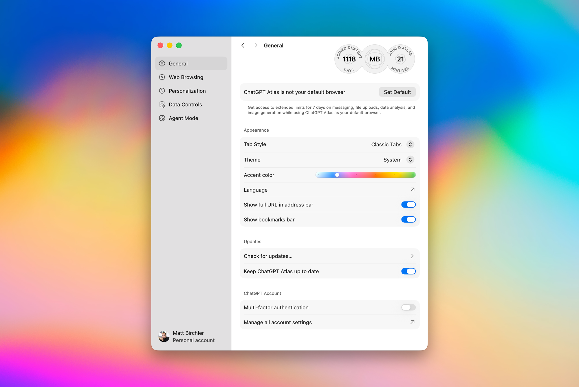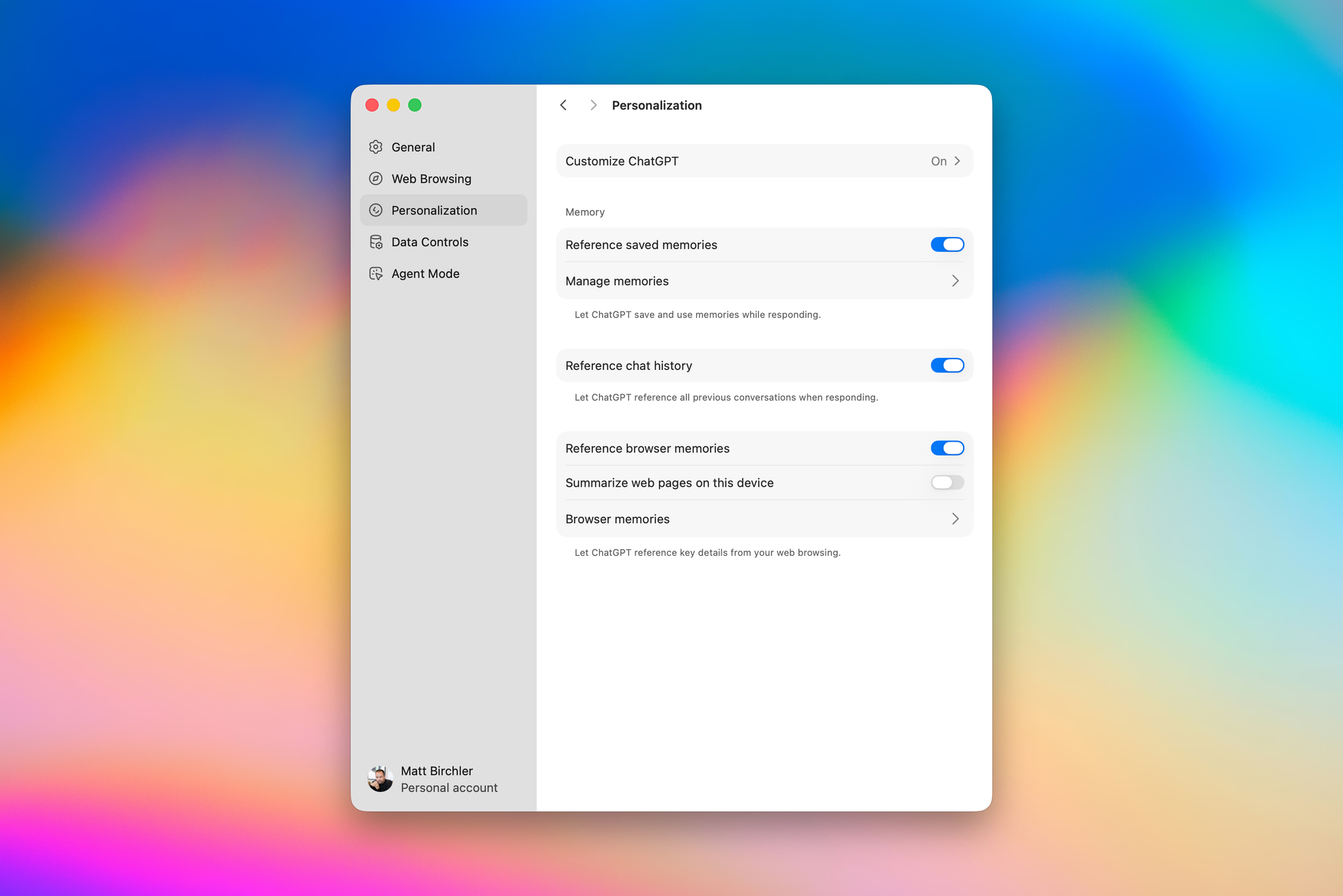 The app does not have an agent mode as of yet, but it sounds like that will be coming in the relatively near future. My experience with these modes in other browsers has been a major letdown, so we'll see if OpenAI can do any better, but I'm not holding my breath here.