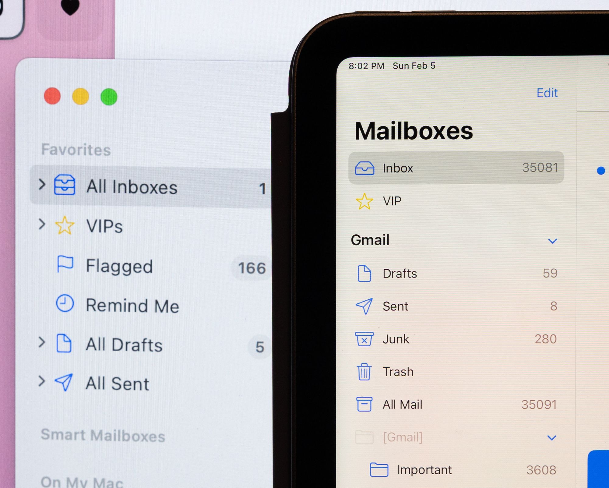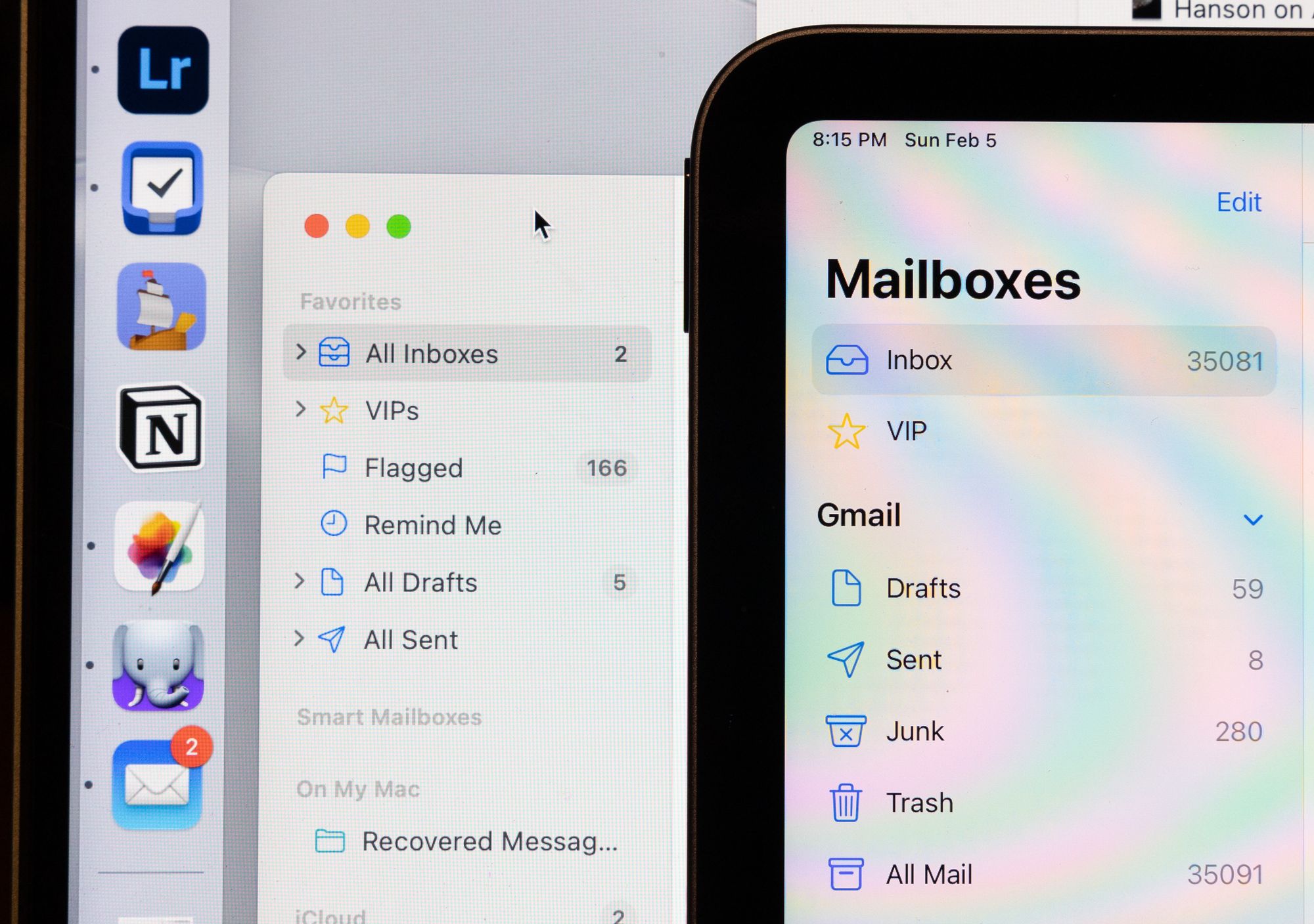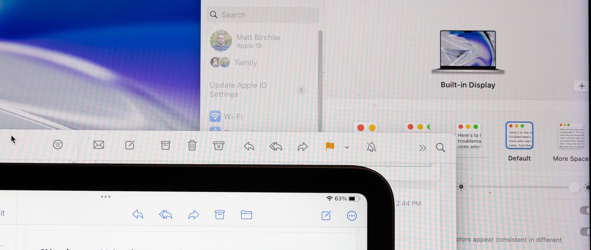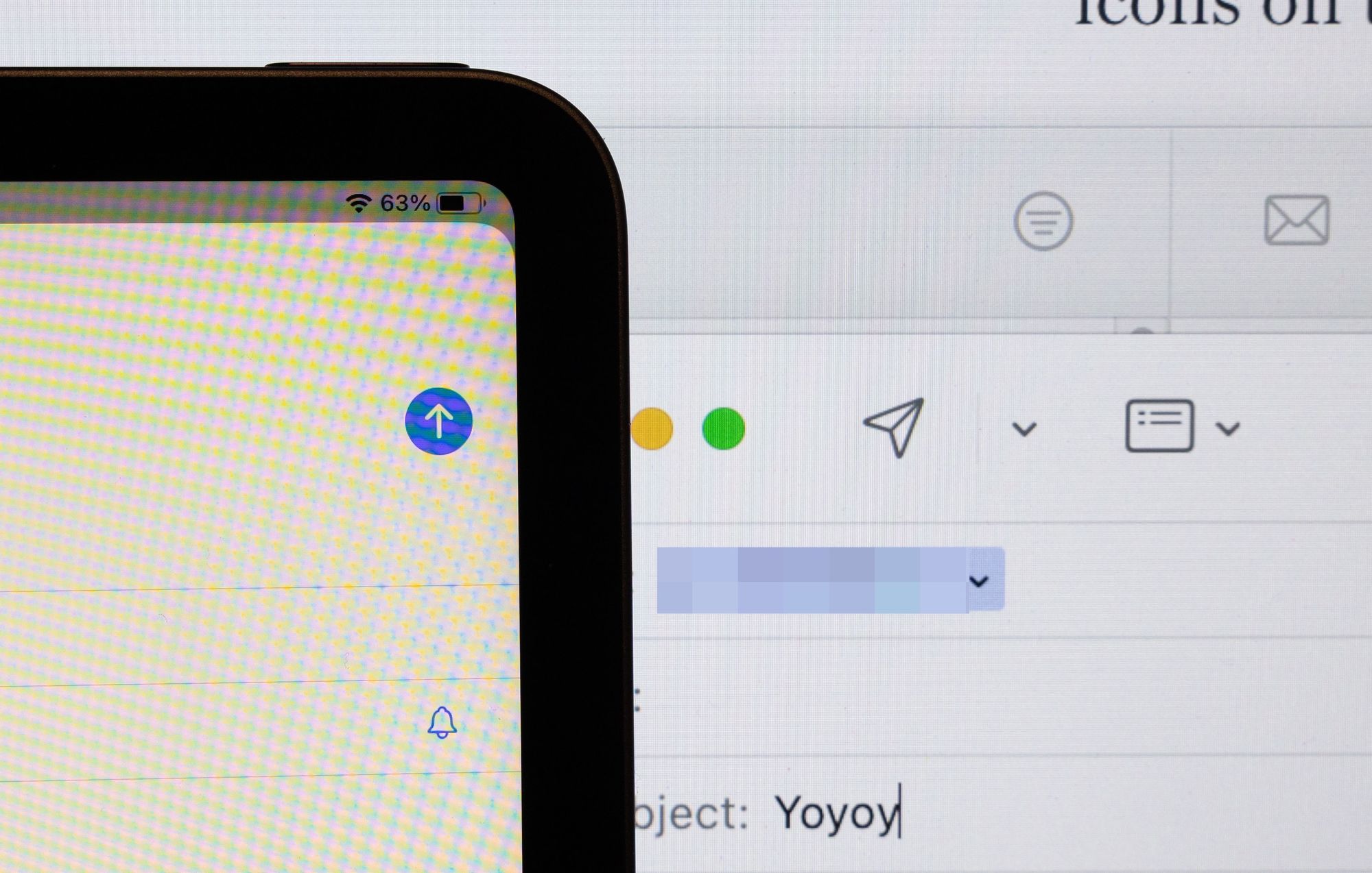 I first looked at Mail, Apple's default mail app, and likely one of the most commonly used apps on both iPadOS and macOS. Here's a photo of the title bar icons on the two devices in this comparison: