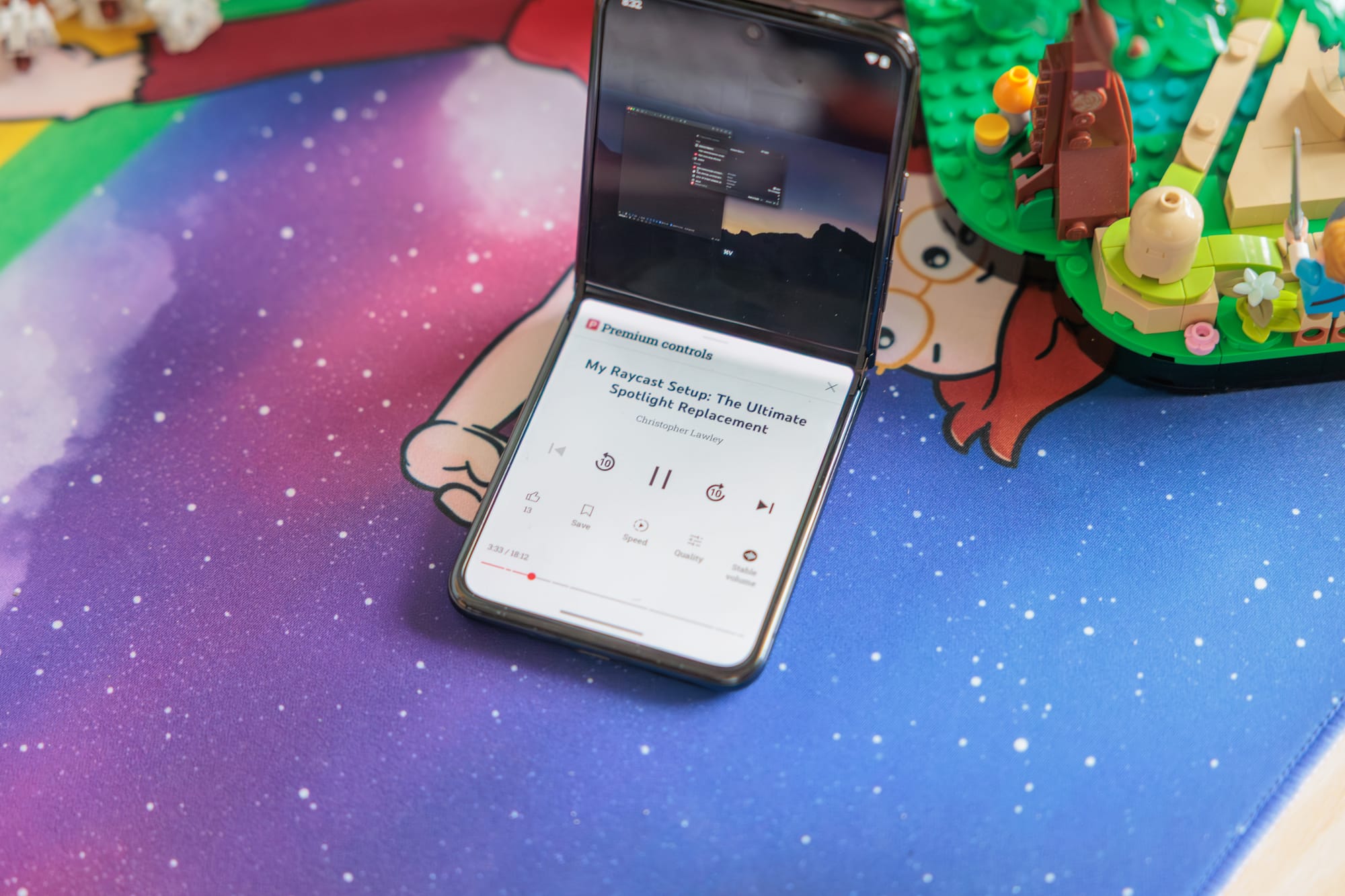 A few third party apps also flip into a custom UI layout when half-folded. YouTube makes the video use the whole top half of the screen and expands the controls to the bottom half. It's pretty nice, although I think this would be better on a fold style phone where the video would be larger