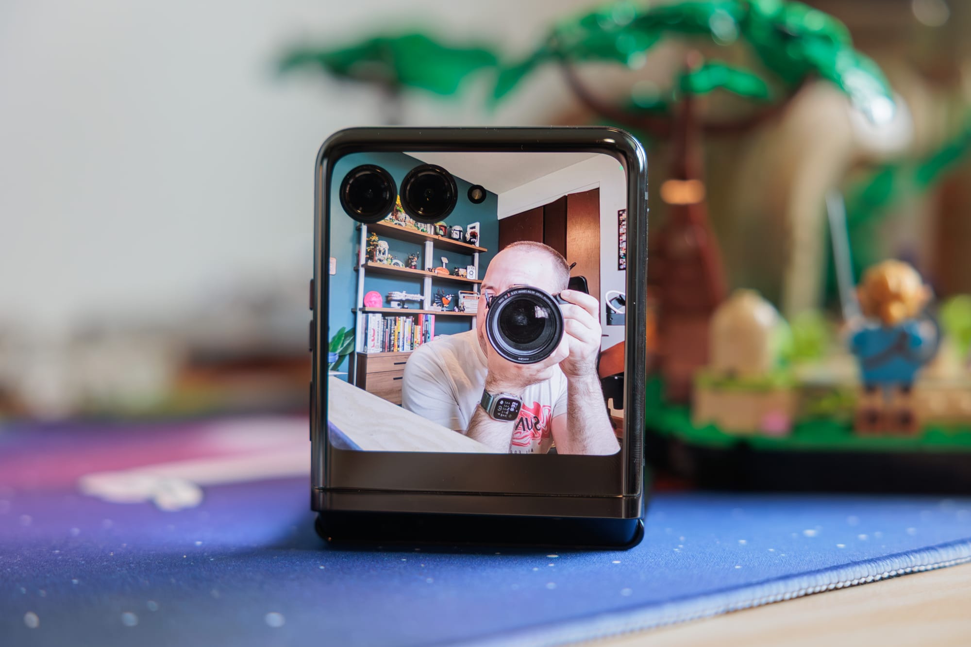 The cameras really get to shine in the folding form factors. In the shot above, you can see how I can fold the phone at an angle to hold the camera at whatever angle I want to take a photo. This lets me take still shots without the need for a tripod, and the timer mode lets me set up for a group shot without needing someone else to hold the camera for us.