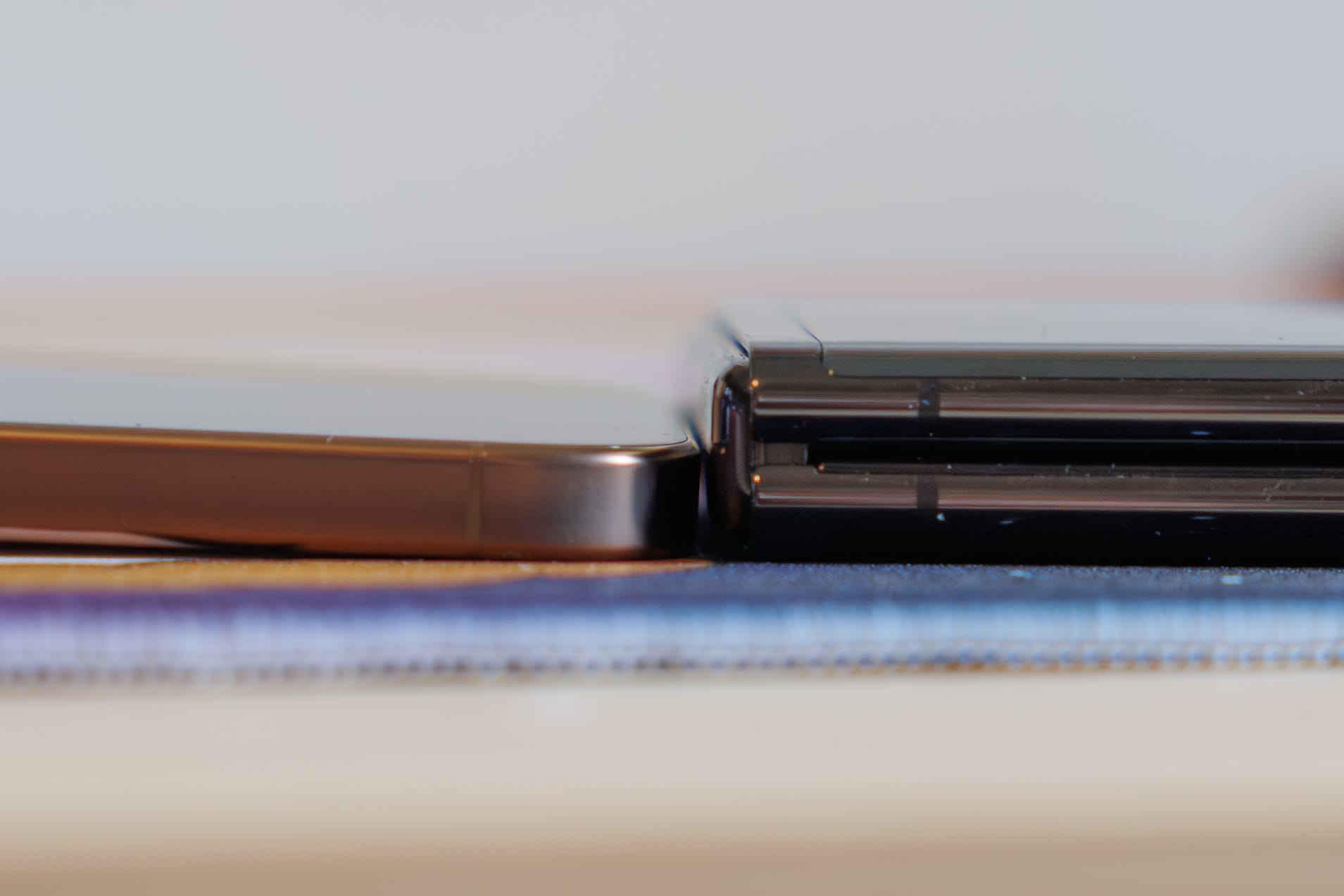 Now this bezel (which is perfectly symmetrical, for what it's worth) isn’t here for yucks, it’s here to protect the screen from slamming into itself when you close the phone. Unlike some early folding phones, this device folds so that both sides are parallel, meaning the display would be pressed up against itself if the slight bumps weren’t there. Apple would probably have to do something similar, lest screens would be prone to cracking when you angrily slam the phone shut to end a phone call (a fond memory of using old flip phones).