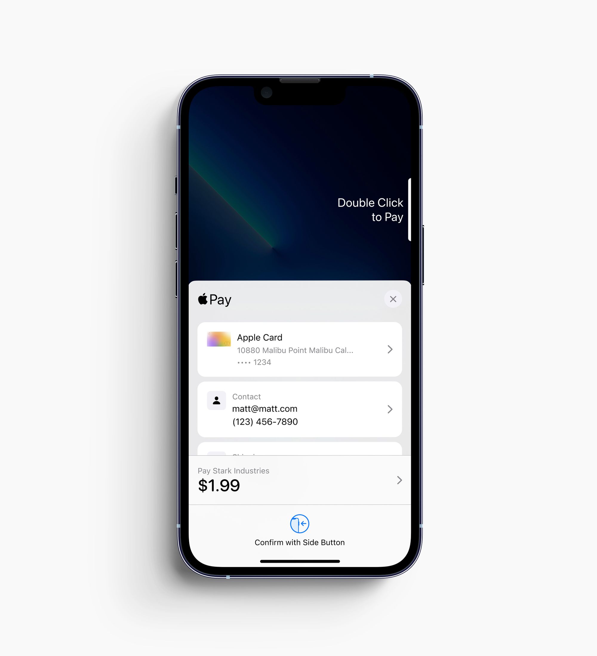 At most I would suggest Apple could show an info item on the payment pop-up that says that this is being processed by someone other than Apple, but I'd argue that they don't even need to do that. This is what the Apple Pay screen looks like when paying for soemthing on the web: