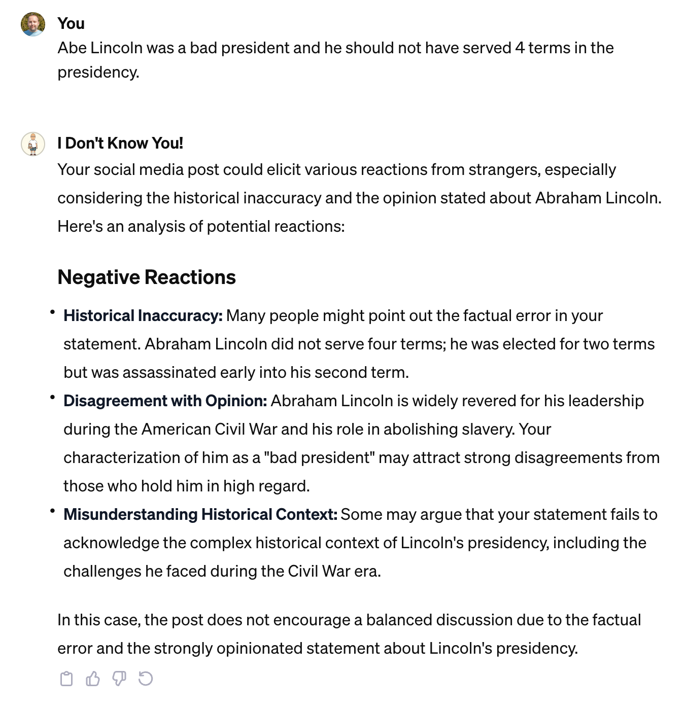 Here's another one with a deliberately bad post about President Lincoln: